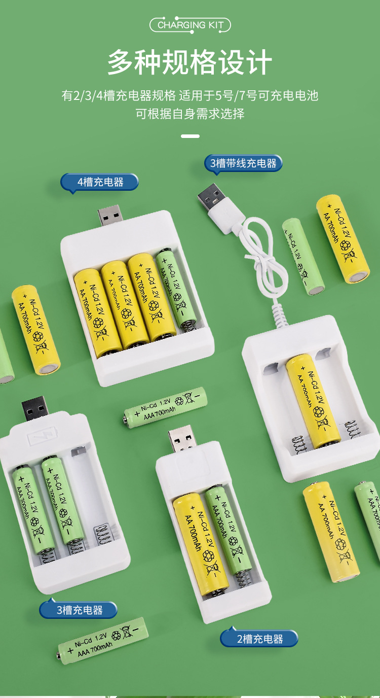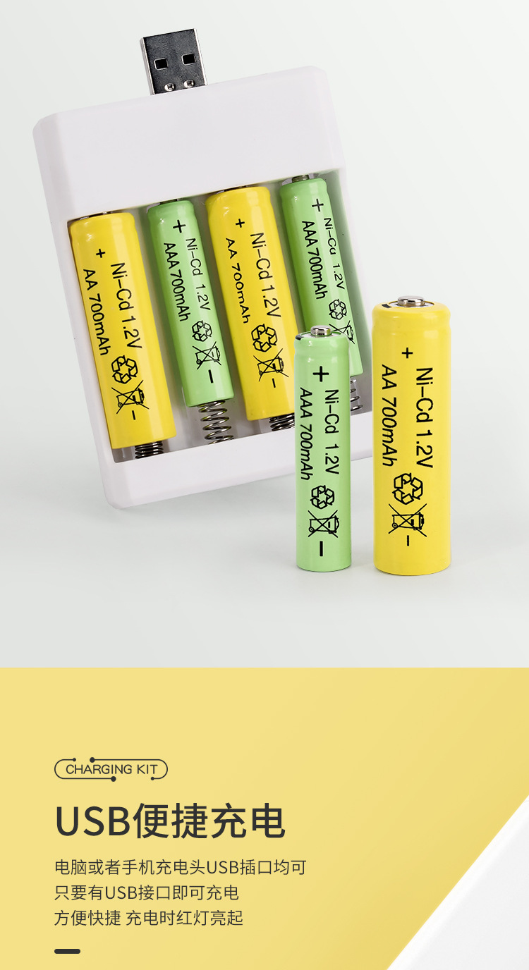 USB5号充電式電池充電器セット7号1.2vAAニッカドニッケル水素玩具用電池卸売玩具用