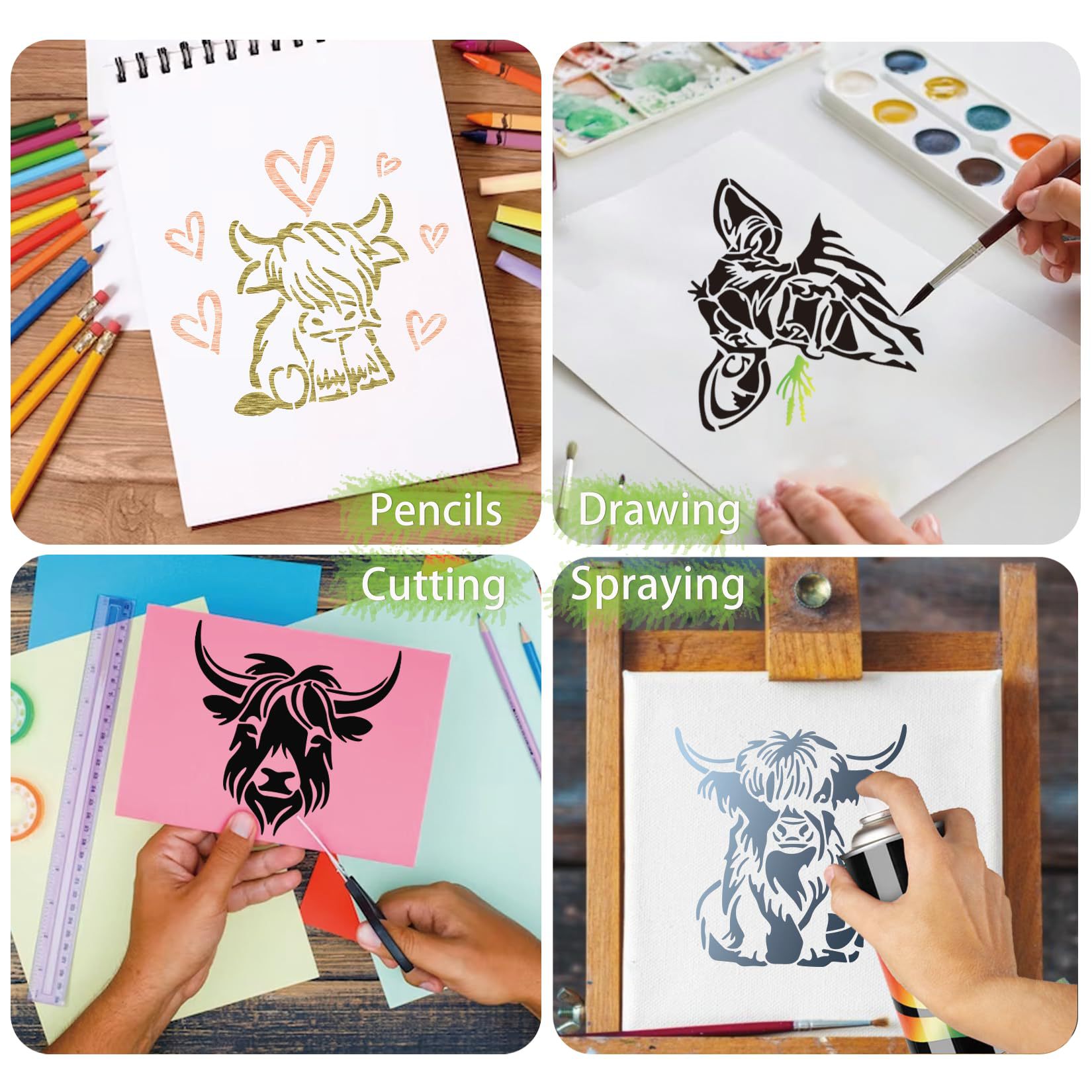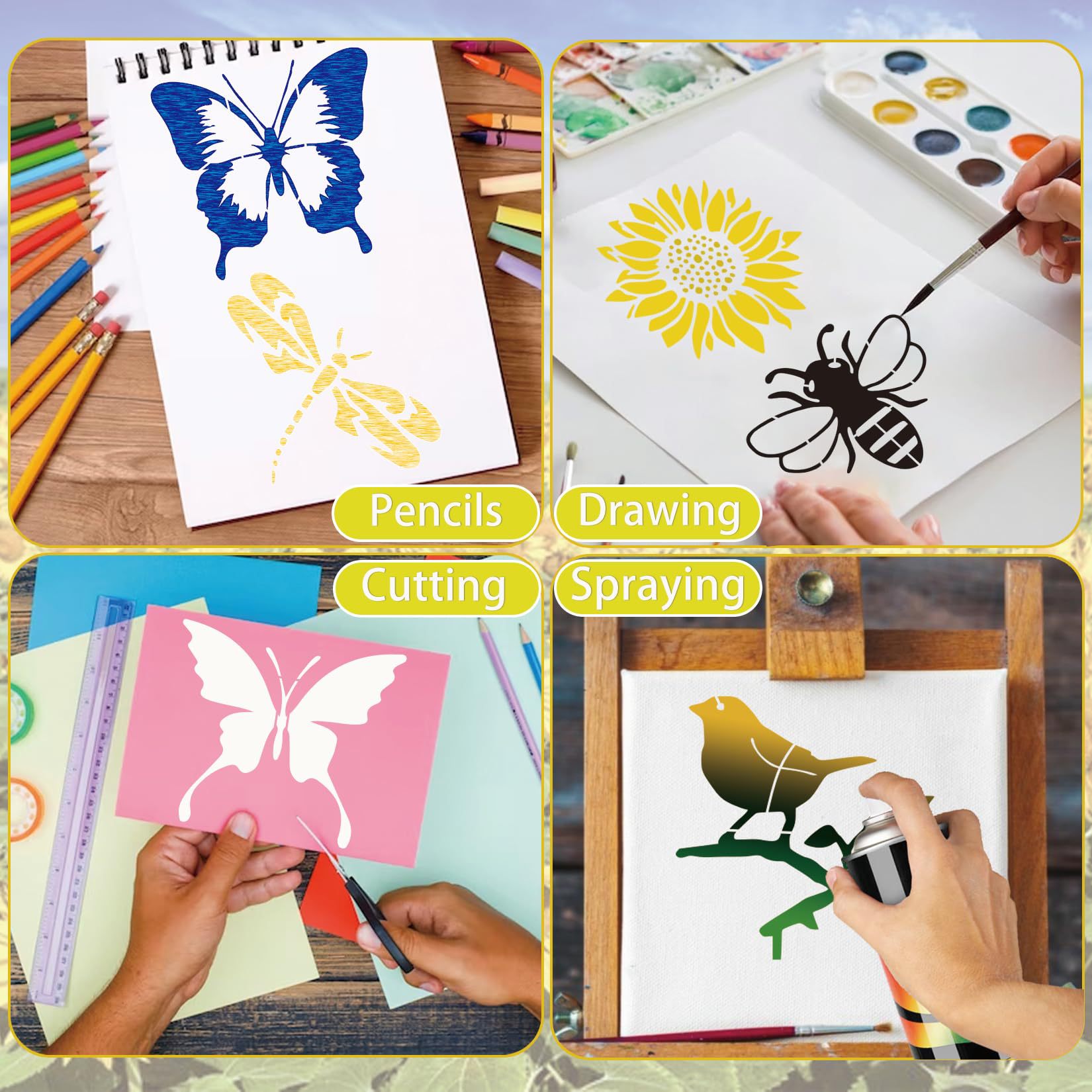 国境を越えたアマゾンの爆発的な昆虫蝶乳牛農舎DIY透かし彫り絵画テンプレートPET材質は洗浄しやすい
