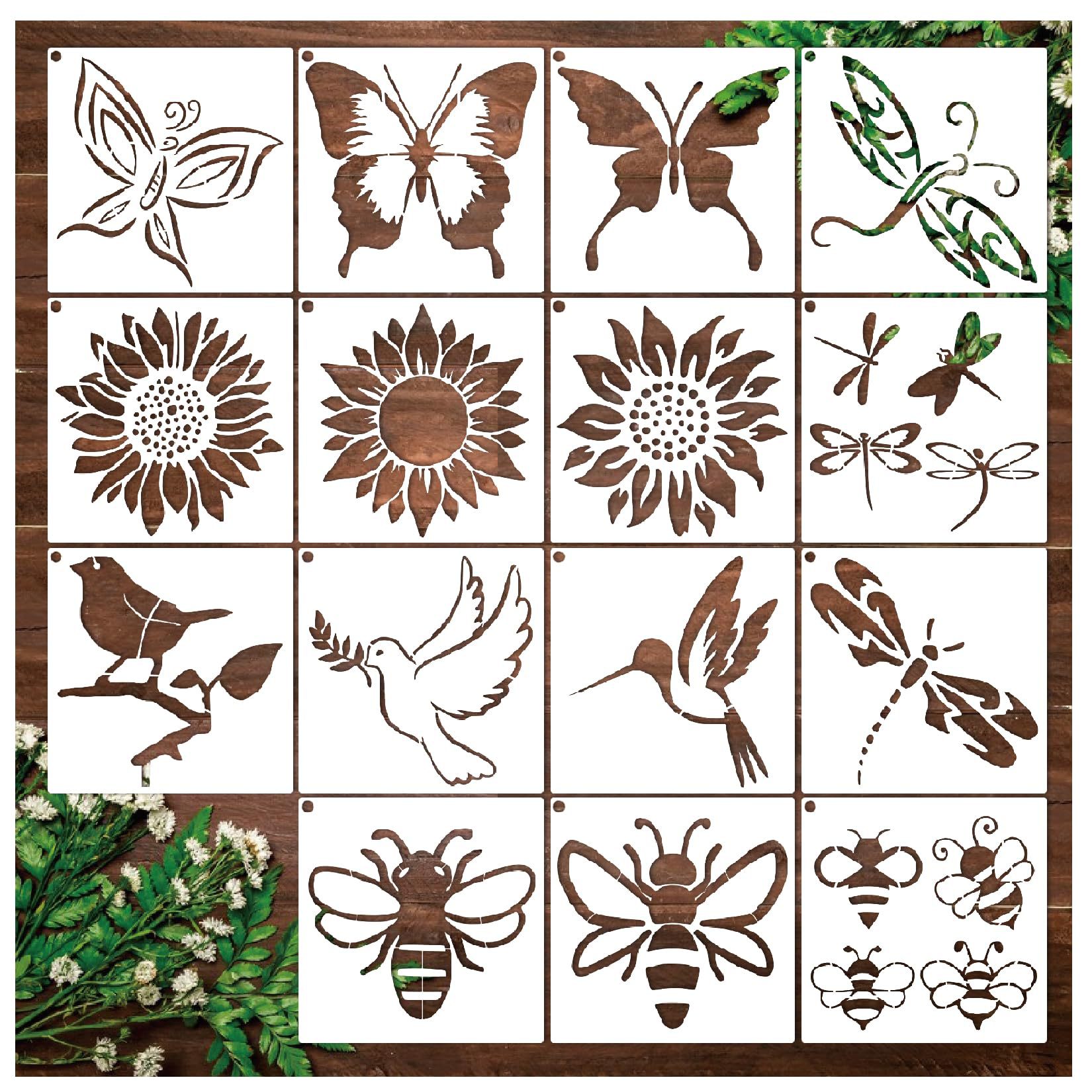 アマゾンの爆発的な野花絵画テンプレートは絵画花卉植物を再利用してpet落書きをスプレーして水洗いできる
