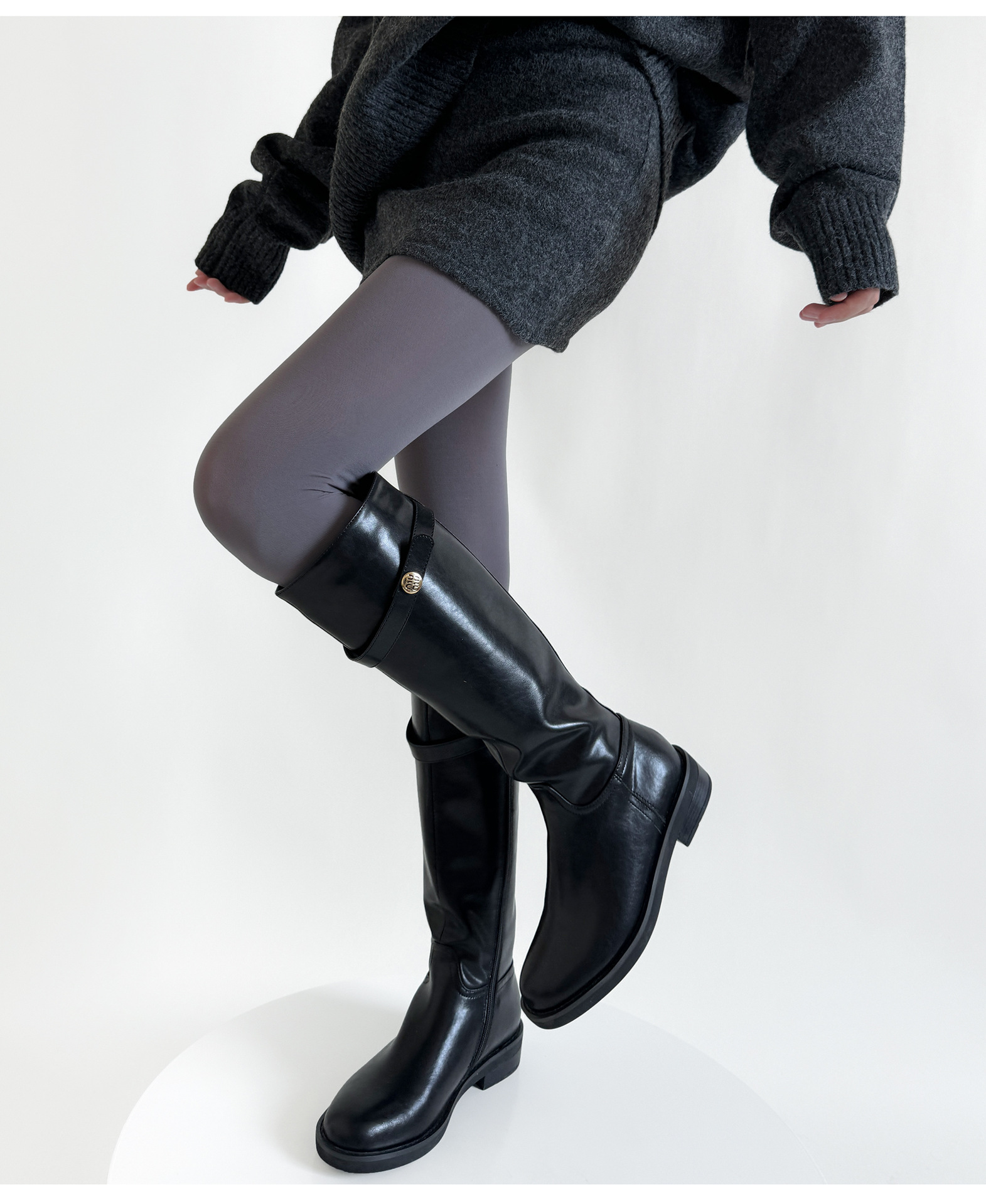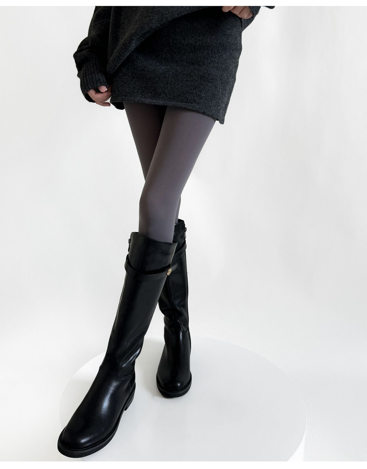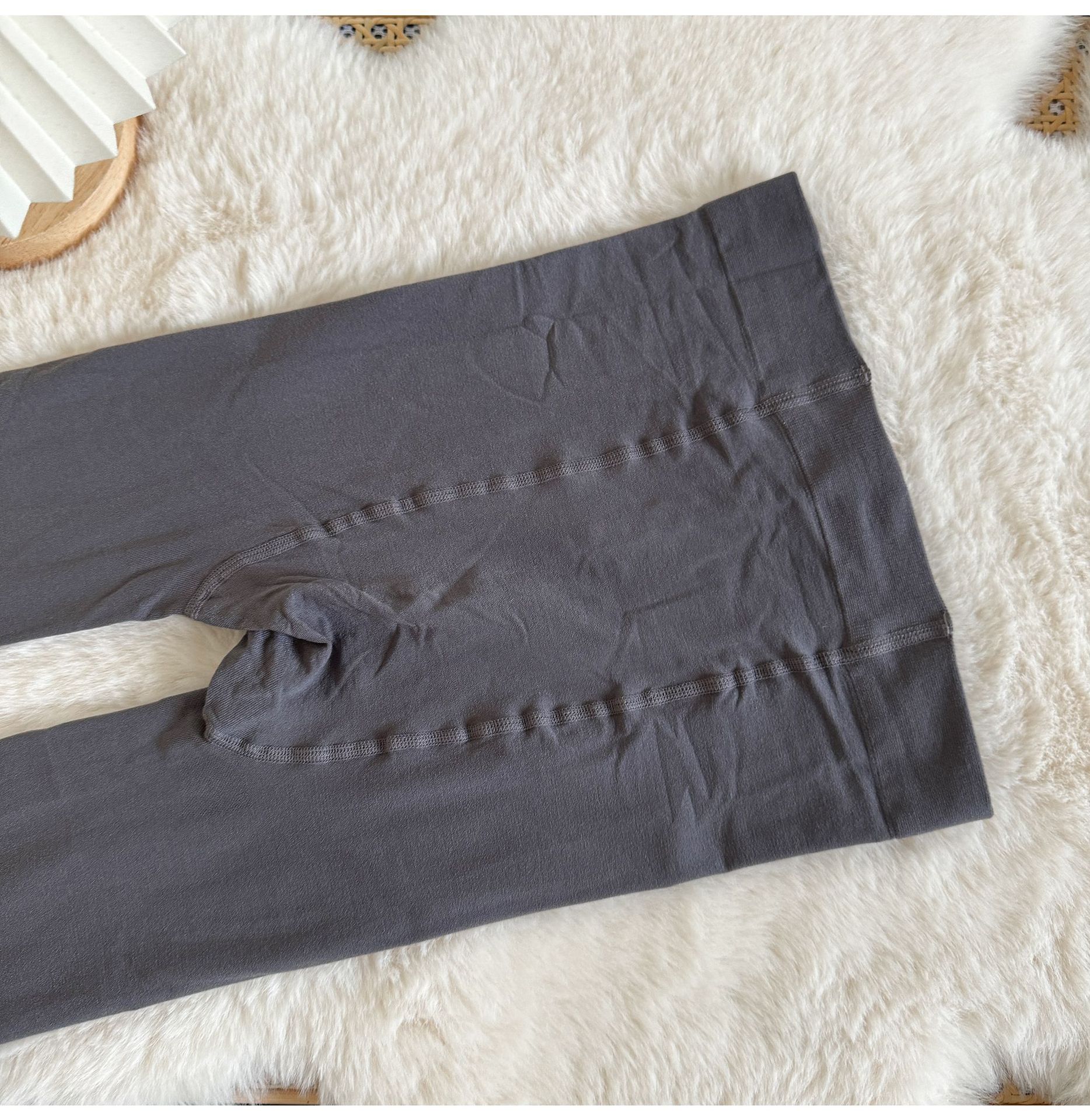秋冬の灰色はやせているレギンスの靴下を見せます。