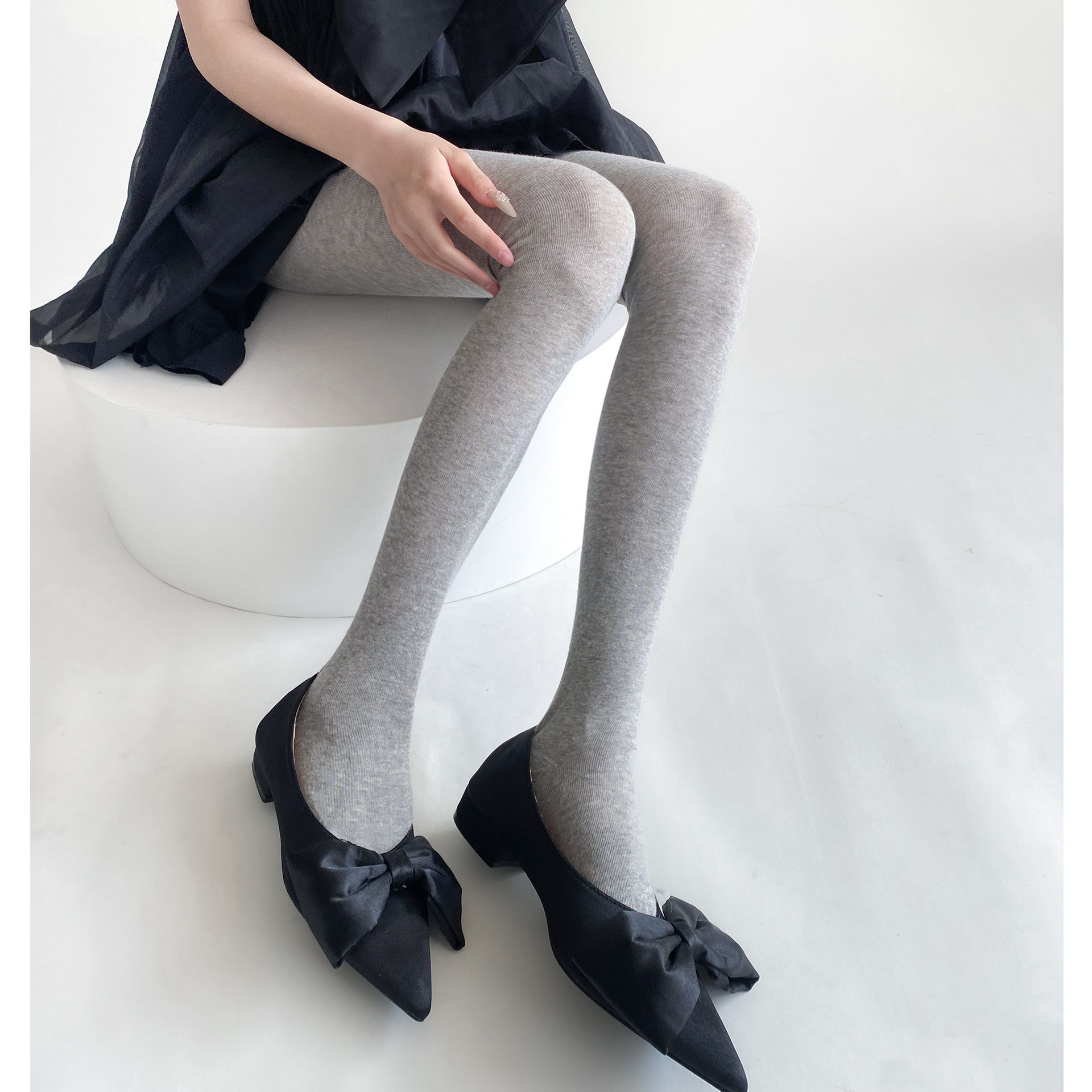 春の夏の薄いタイプのわずかな透き通った肉の底の靴下の女性の純色のズボンの靴下の灰色の系のシンプルな風の綿の平板のズボンの靴下