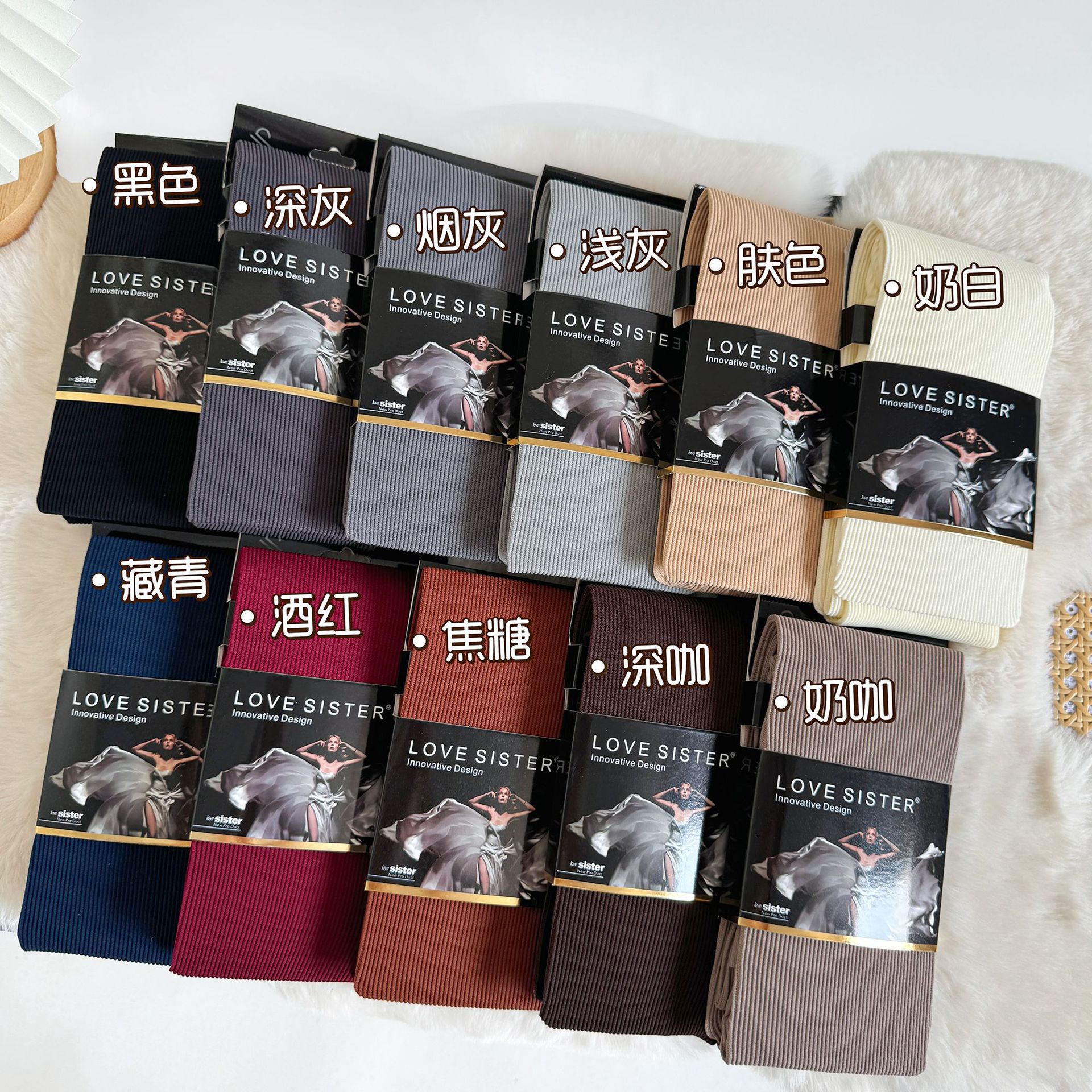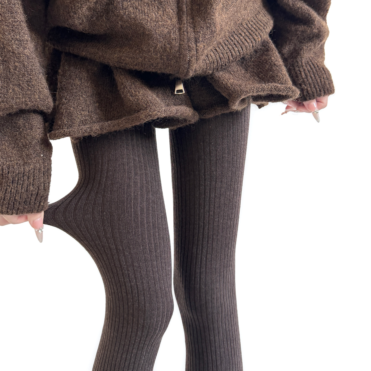 秋冬竖纹保暖加绒羊毛打底裤咖色百搭简约拉绒连裤袜灰色踩脚袜裤