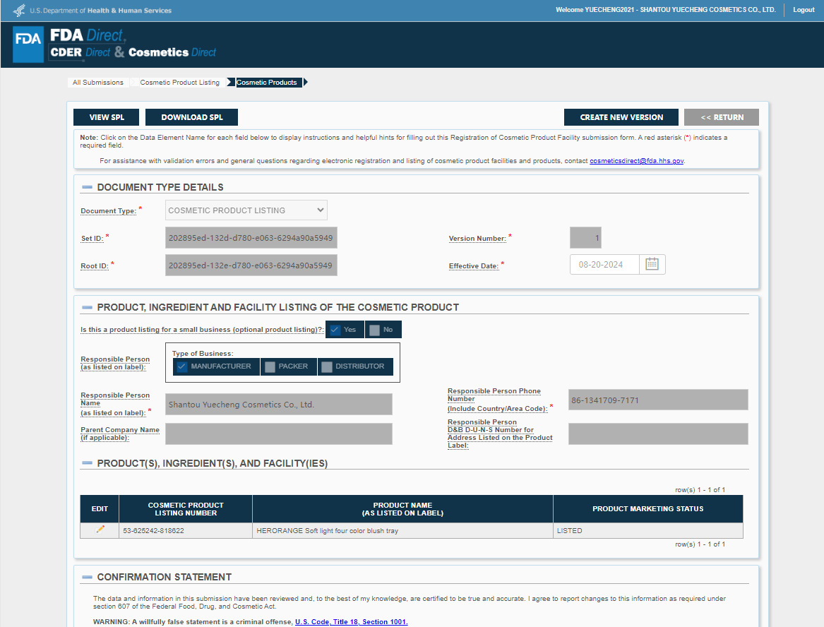 特殊化粧品登録証番号 広東省Gメイクアップネットワーク準備番号2024328820