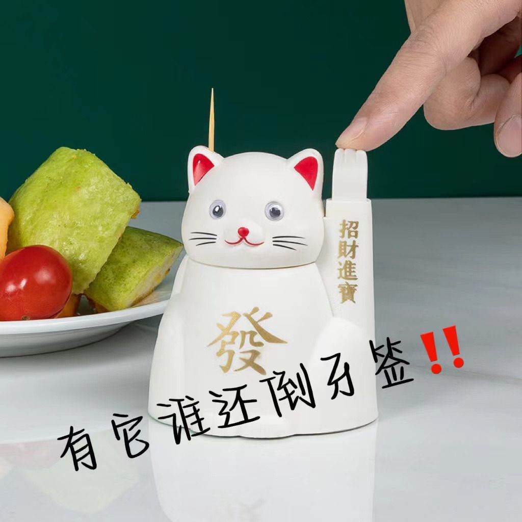 クリエイティブ招き猫楊枝筒高颜値家庭用収納ケース軽贅沢レストラン押圧式自動ポップアップ楊枝ケース