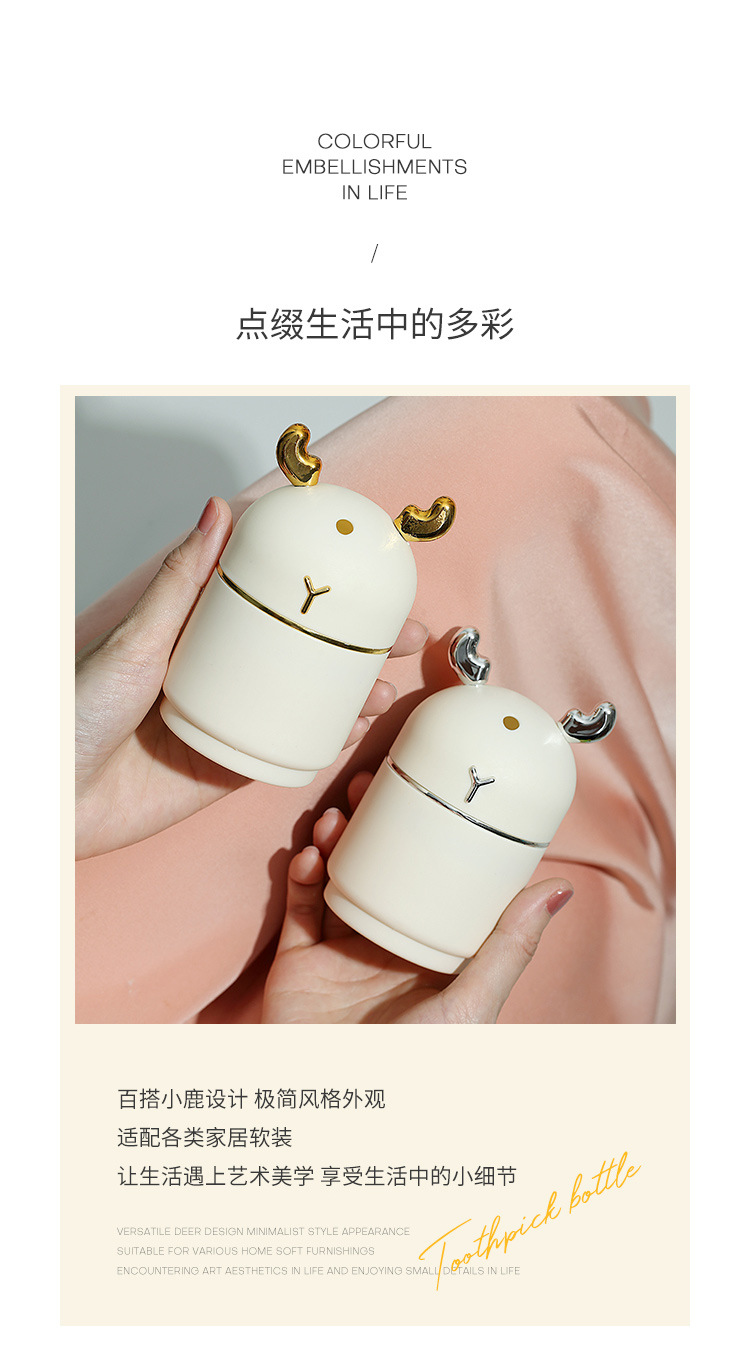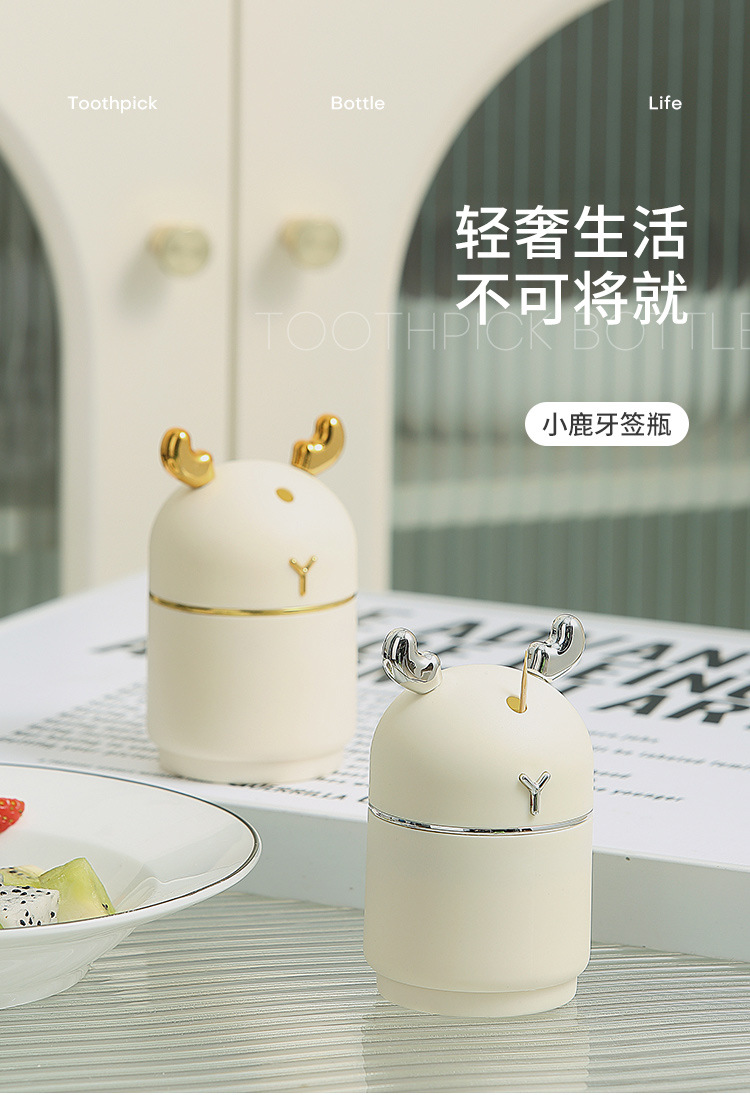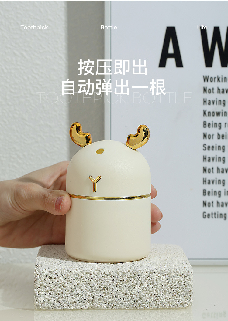新しい鹿のボタン式のつまようじの筒は自動的に高級な個性のアイデアのかわいい高い顔の値のネットの赤いつまようじの缶を飛び出します。