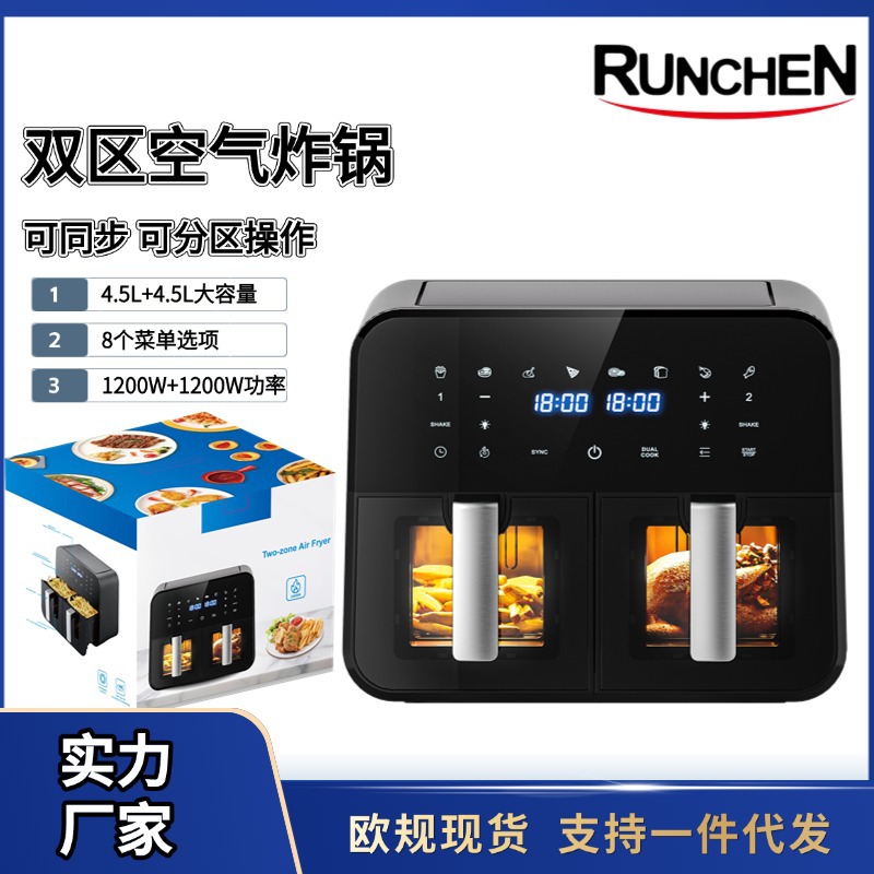 工場現物対外貿易輸出双鍋エアフライヤー9リットル可視大容量Air Fryer220vユーロプラグ