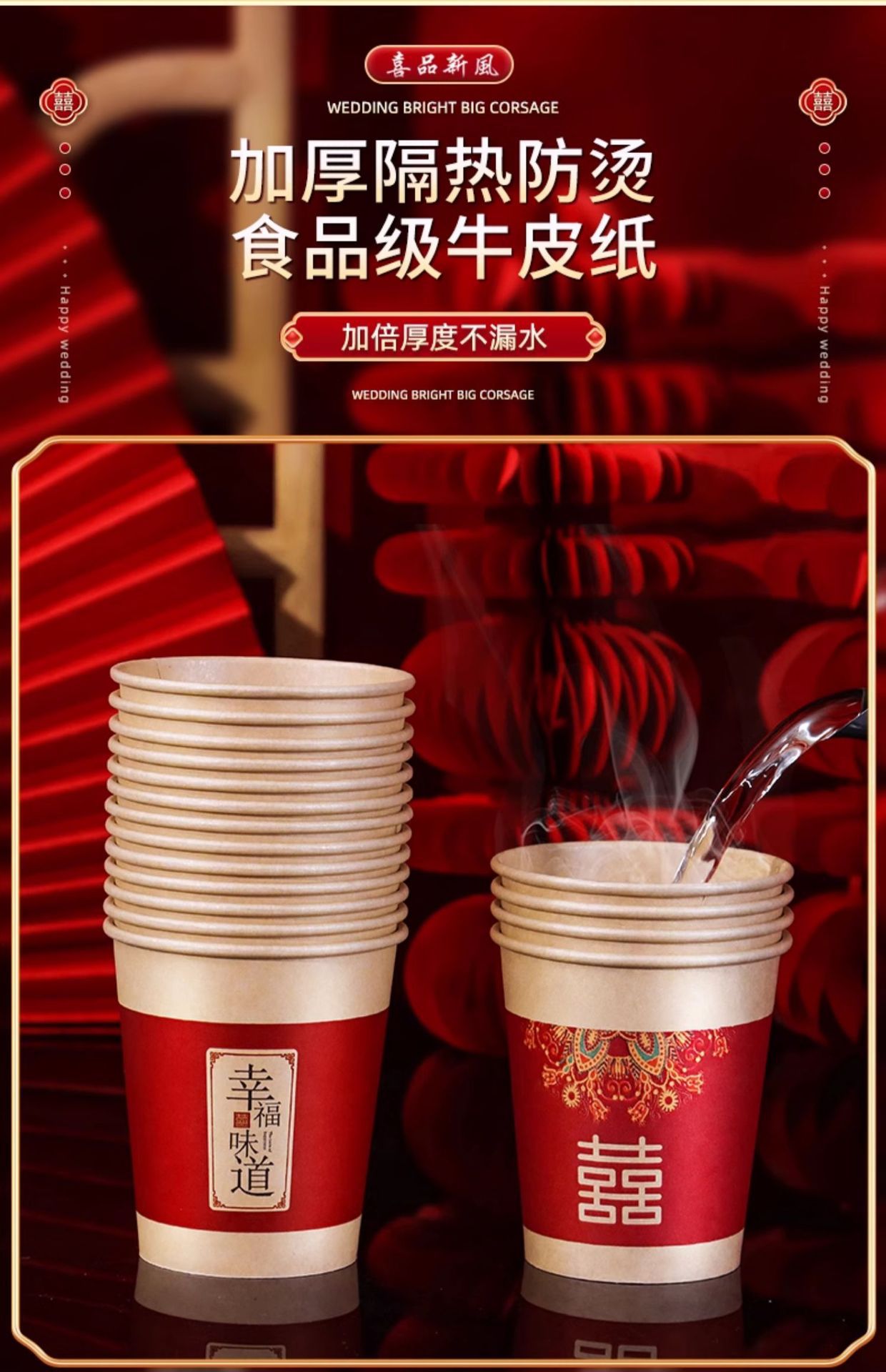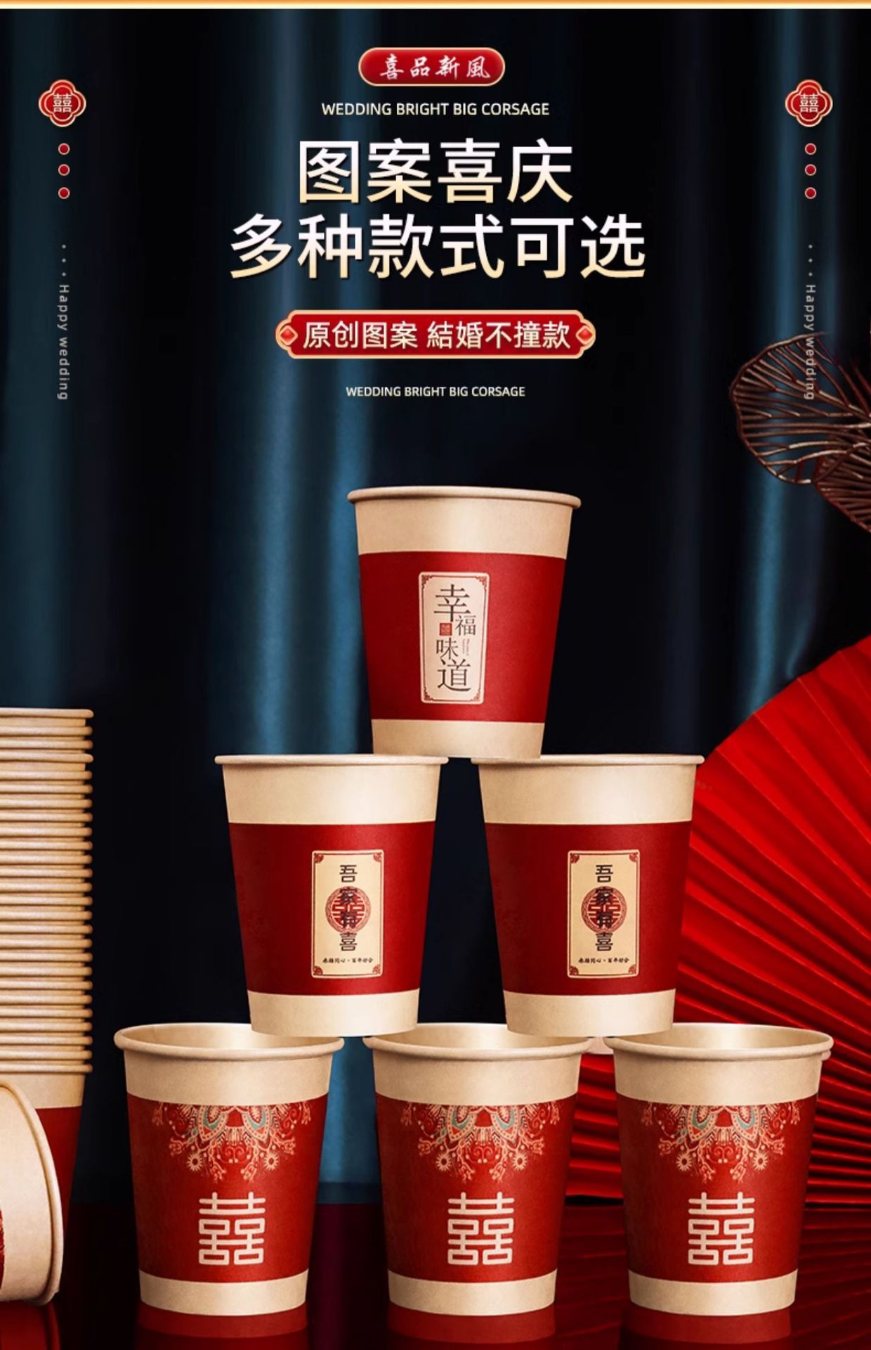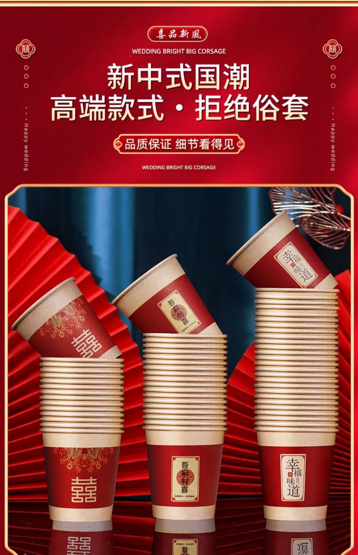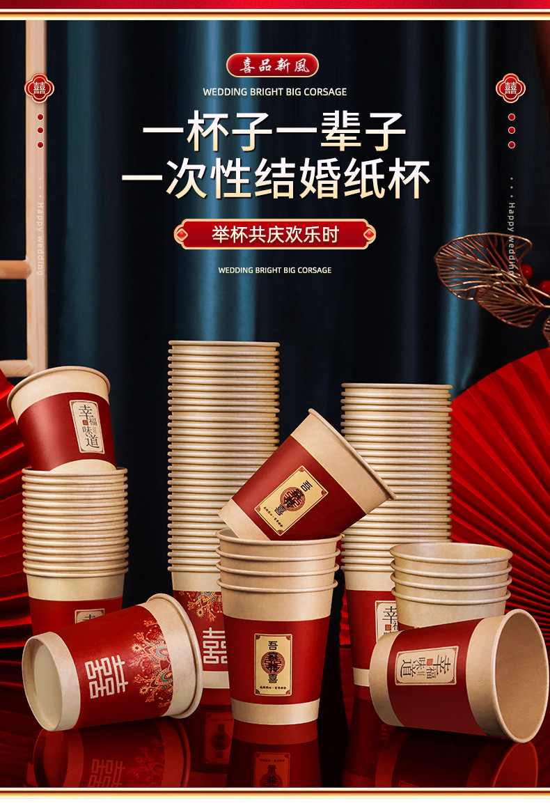 結婚用品大全喜字紙コップは結婚結婚式の結婚祝いを準備しています。