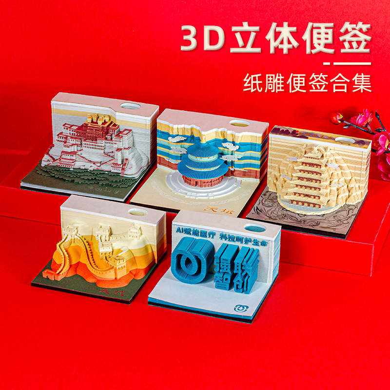 3D立体メモ 北京天壇立体メモ飾り 故宮文化創意紙彫りギフト 手で切れるメモ 便利なメモ
