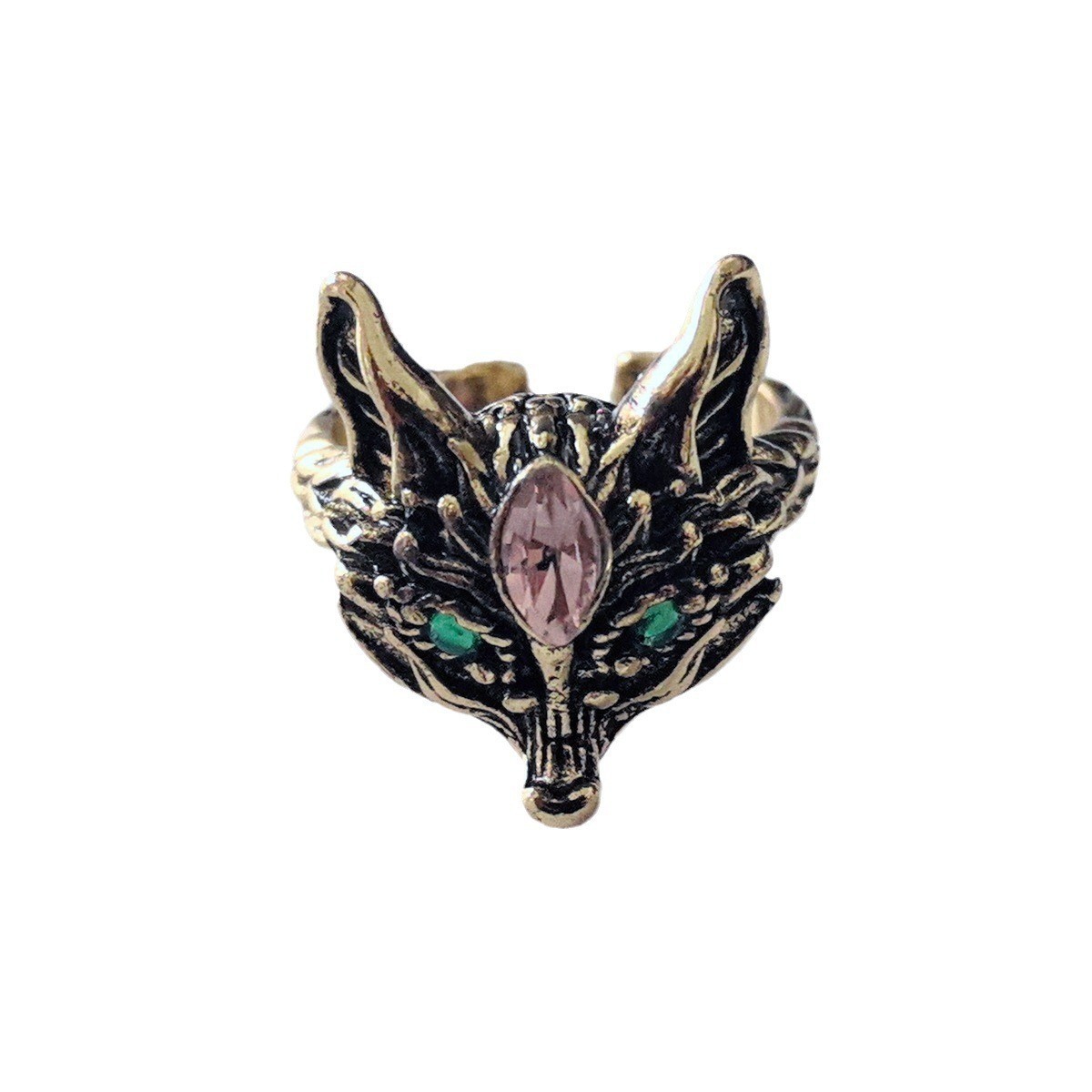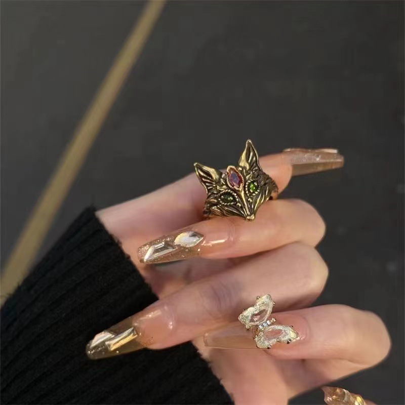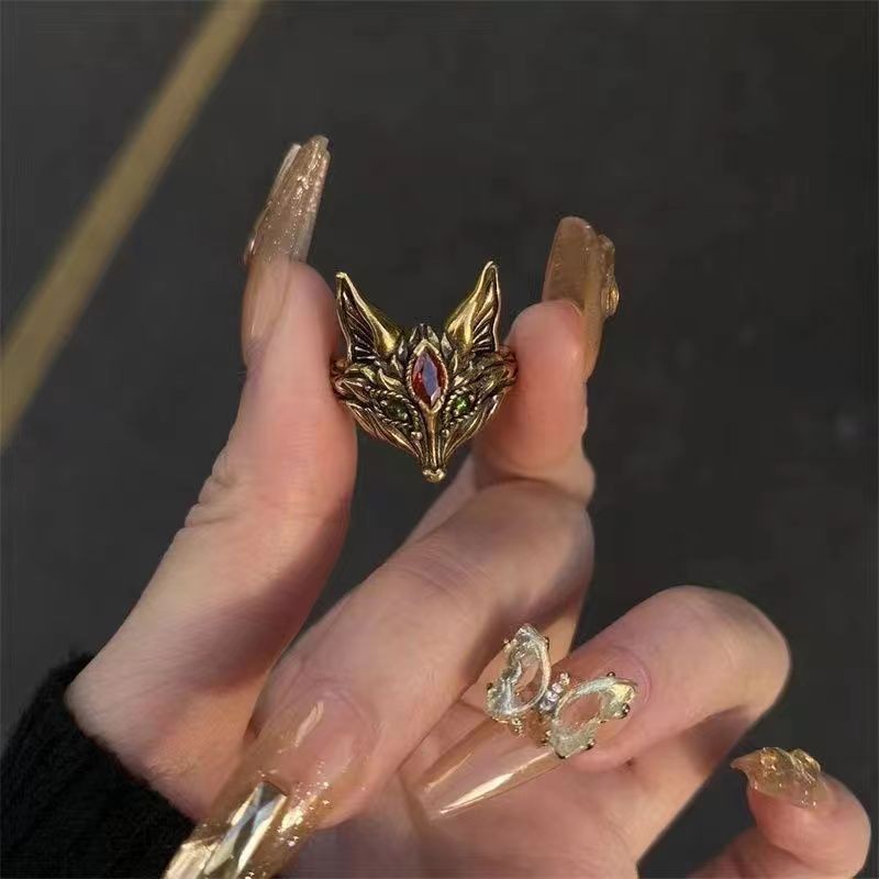 ライトラグジュアリーニッチデザインファッショナブルな個性魅惑的なキツネレトロ多用途九尾キツネオープンリングリング女性用