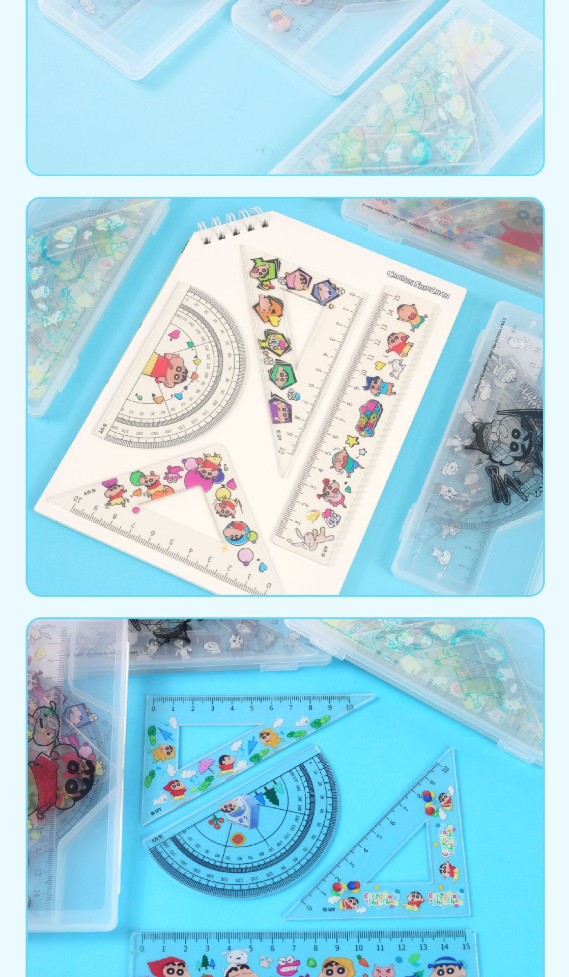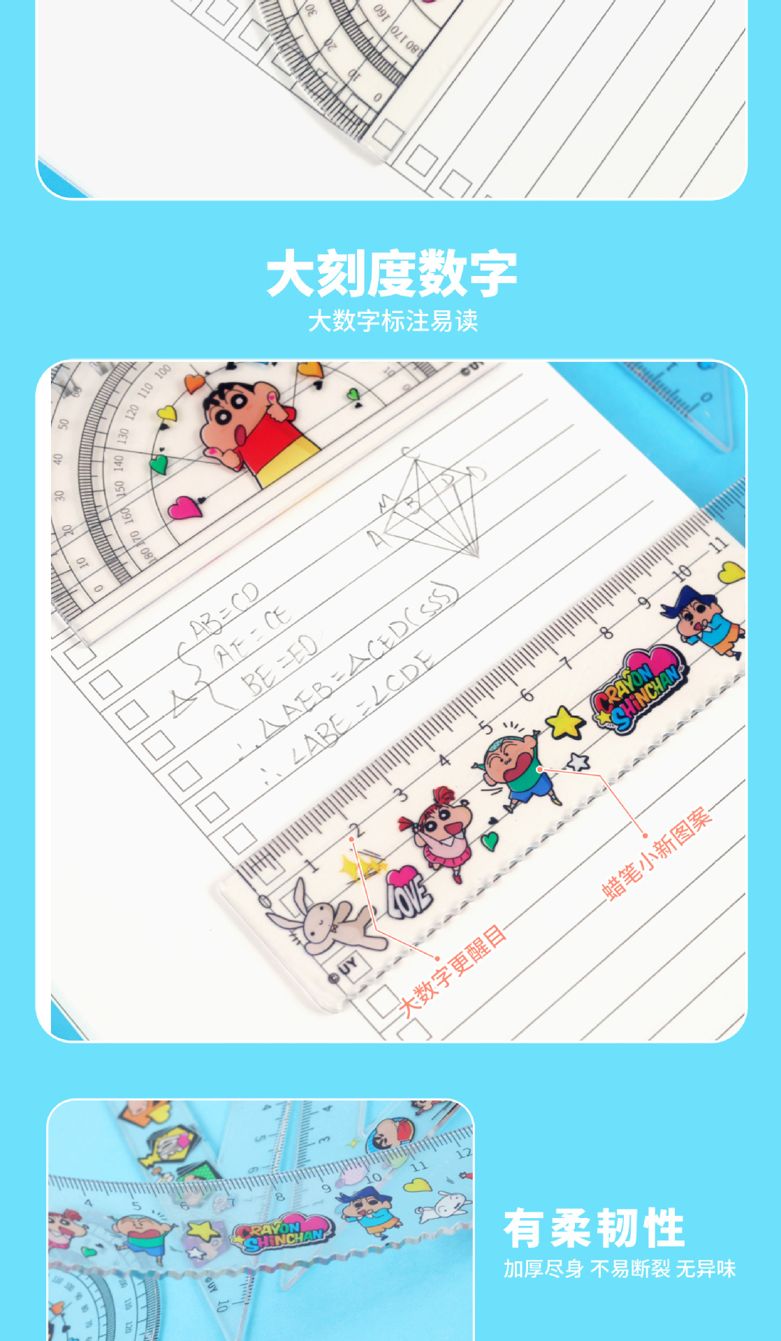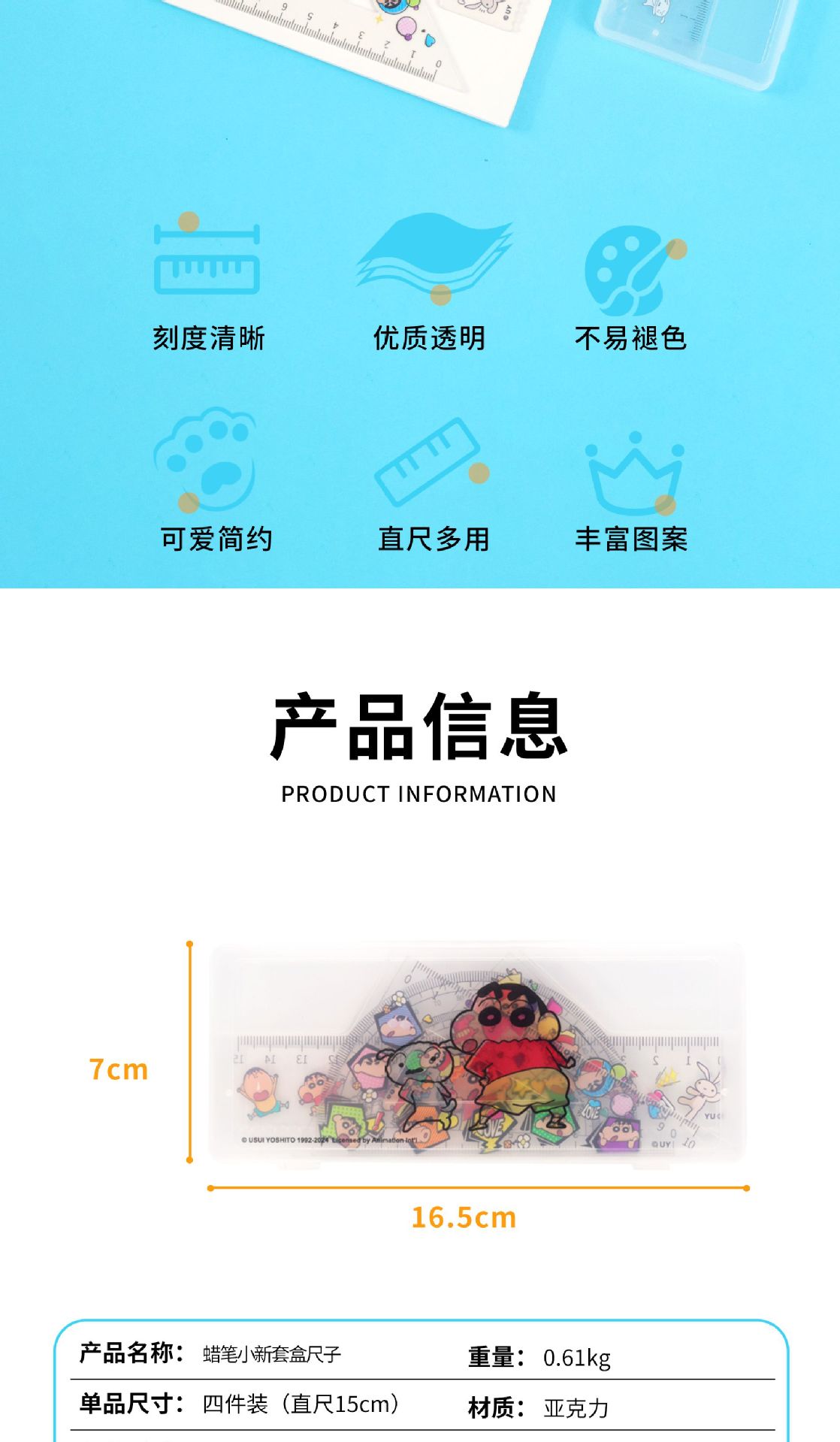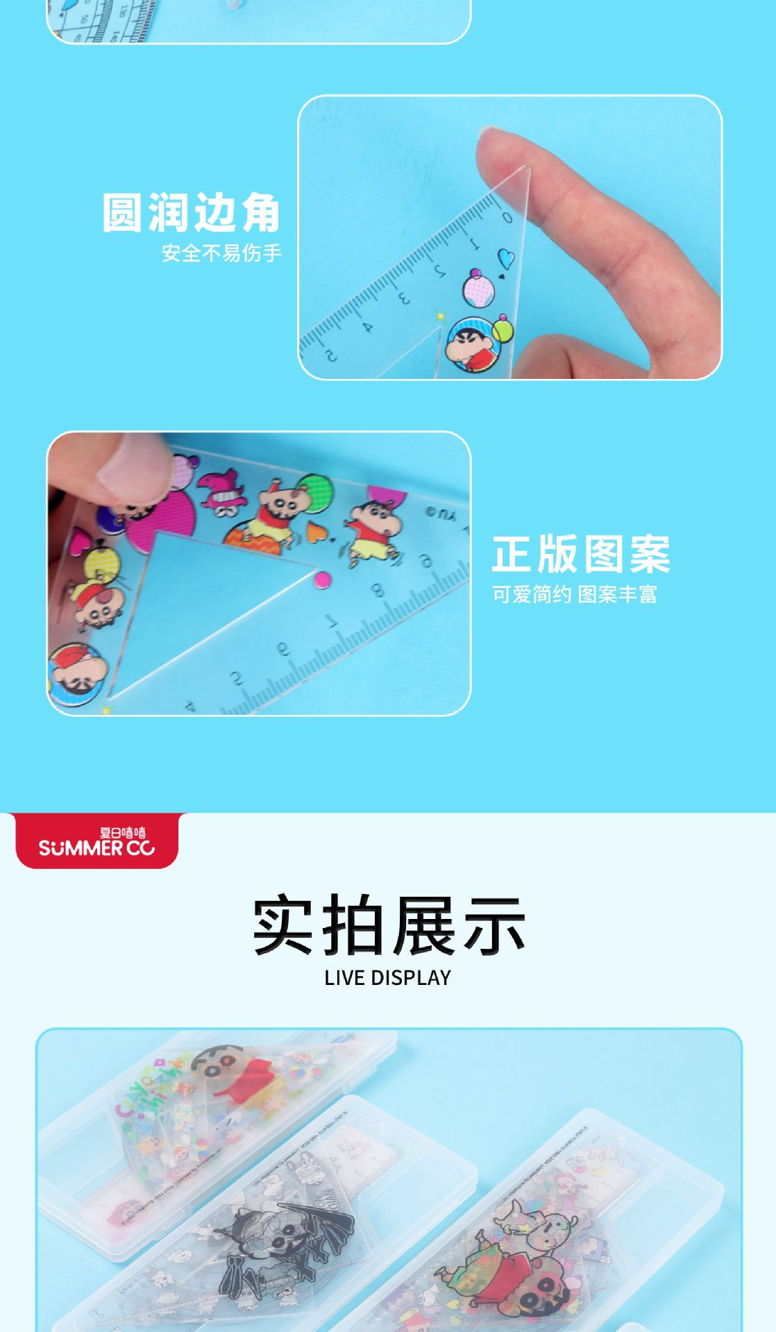 クレヨンしんちゃん公式ライセンス*定規4点セット(定規ケース入り)学生向け漫画風文房具多機能直定規