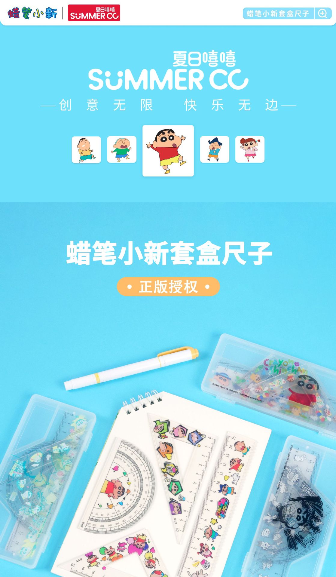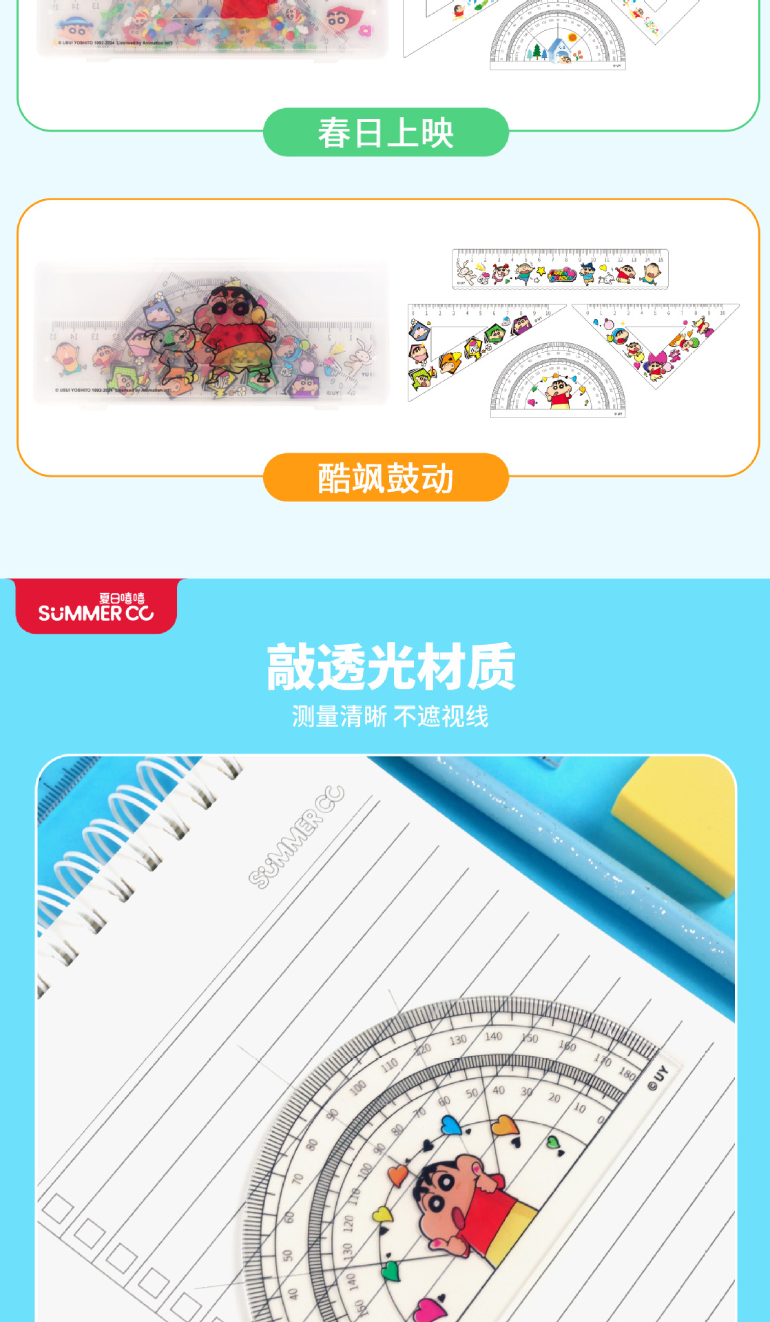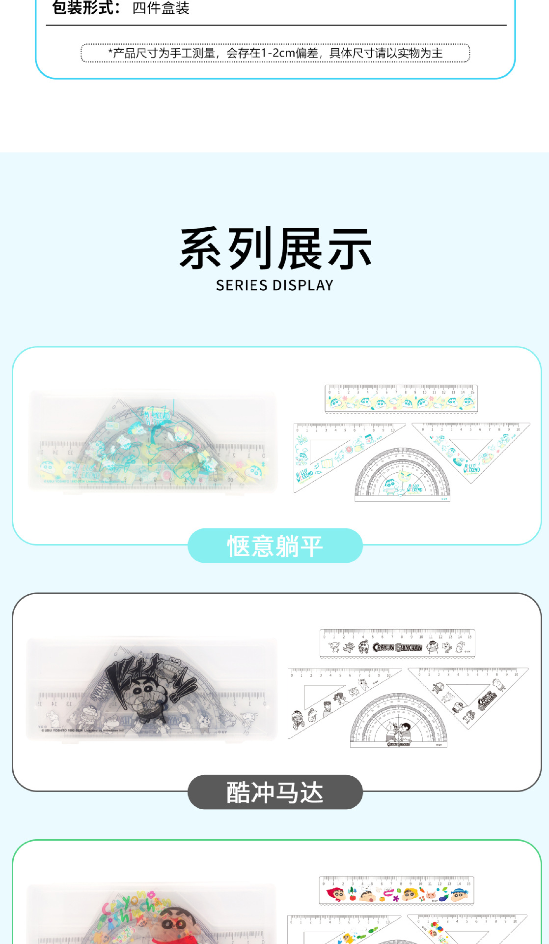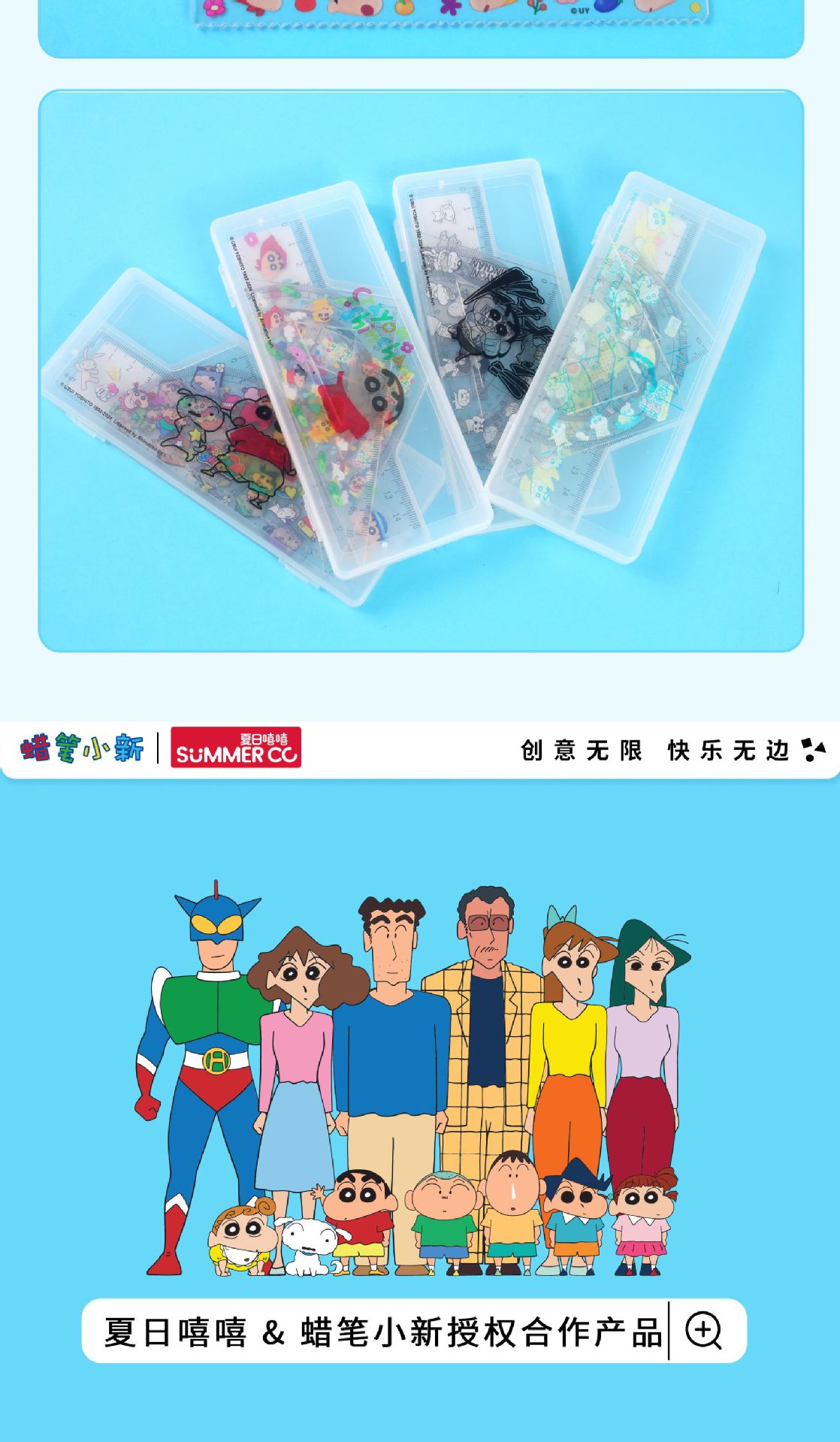 クレヨンしんちゃん公式ライセンス*定規4点セット(定規ケース入り)学生向け漫画風文房具多機能直定規