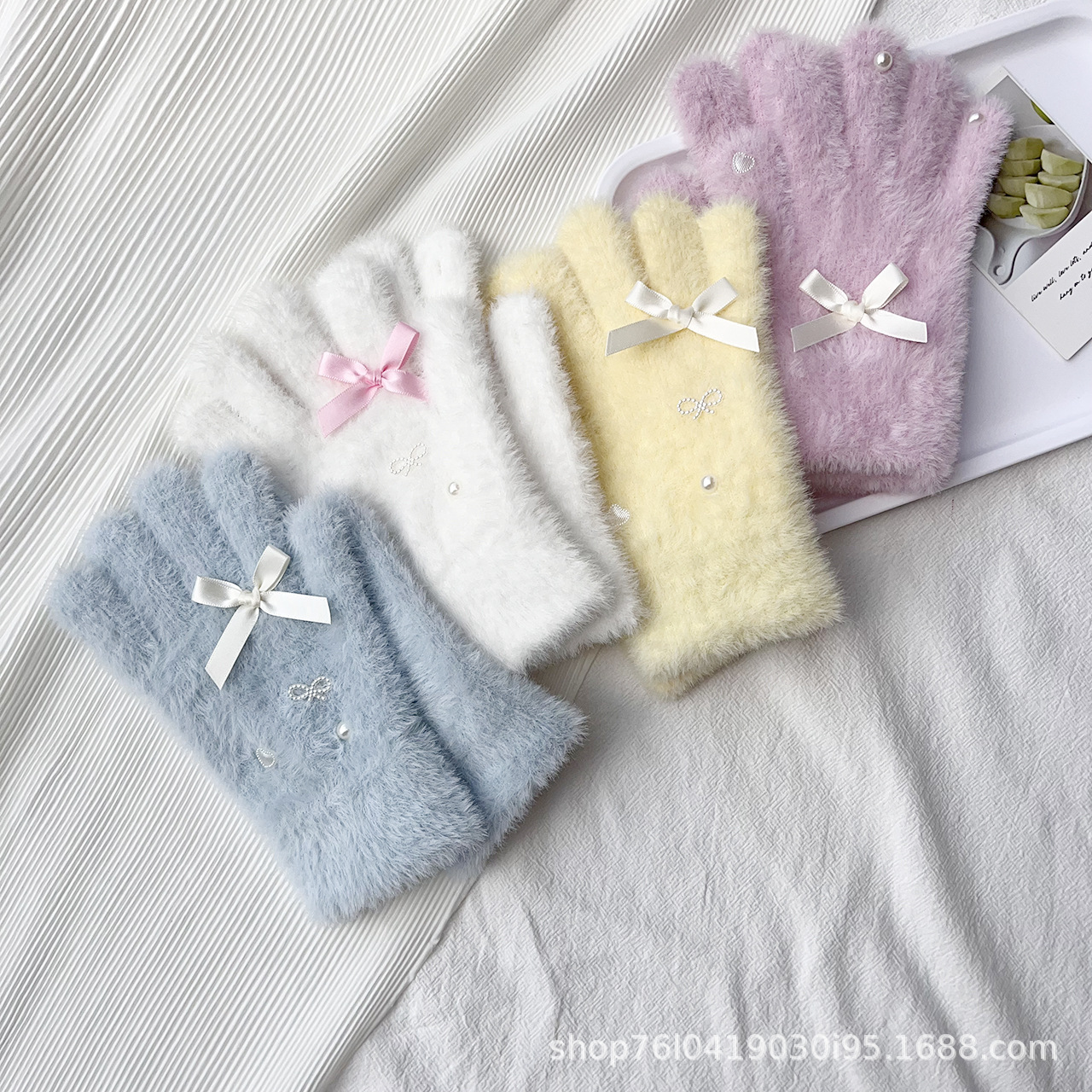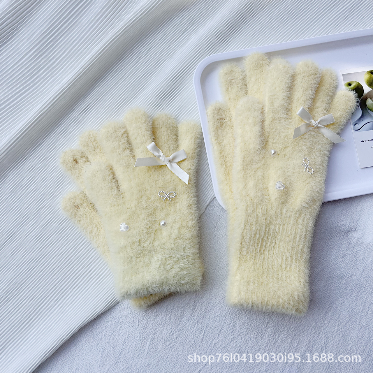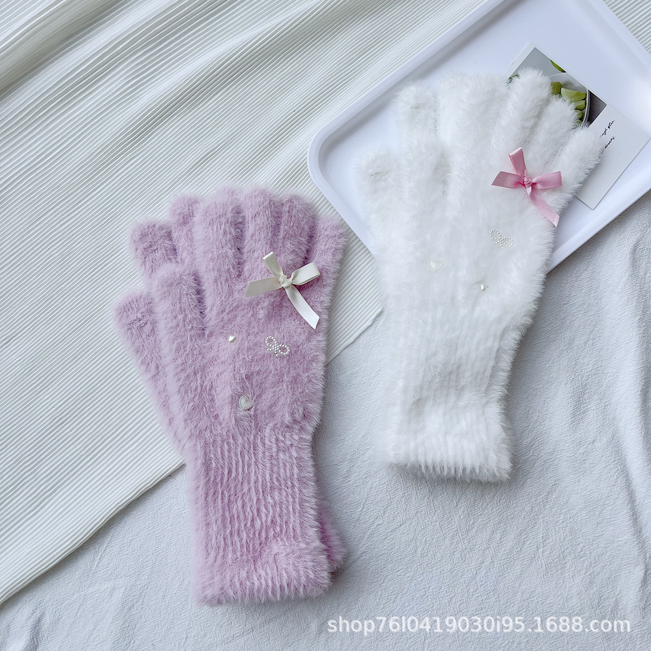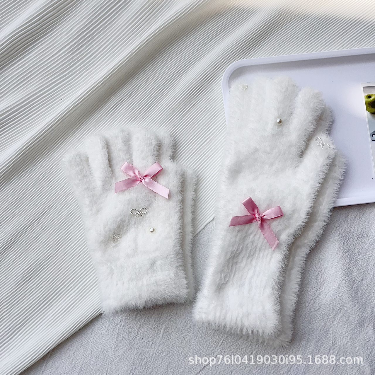 仿貂绒蝴蝶结手套