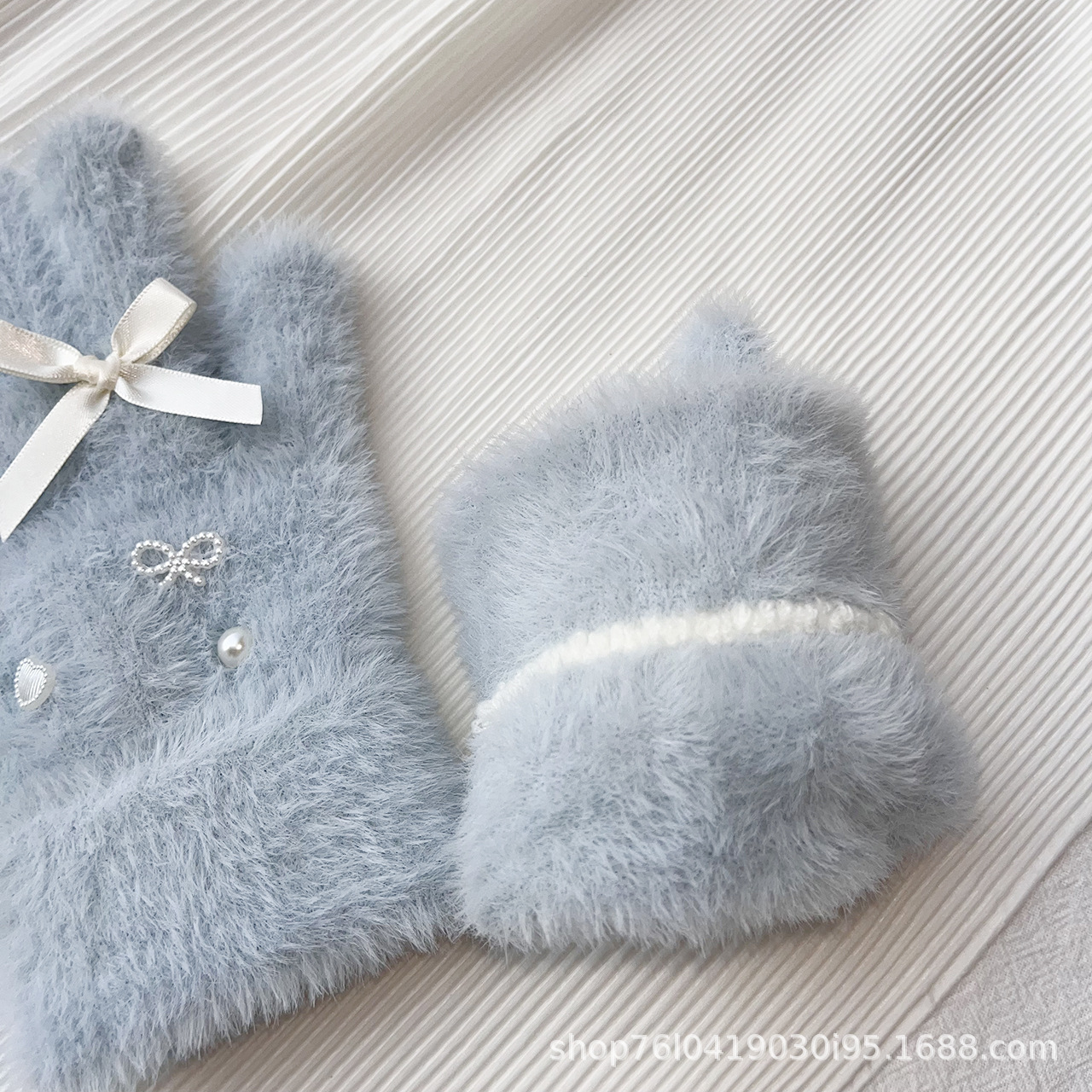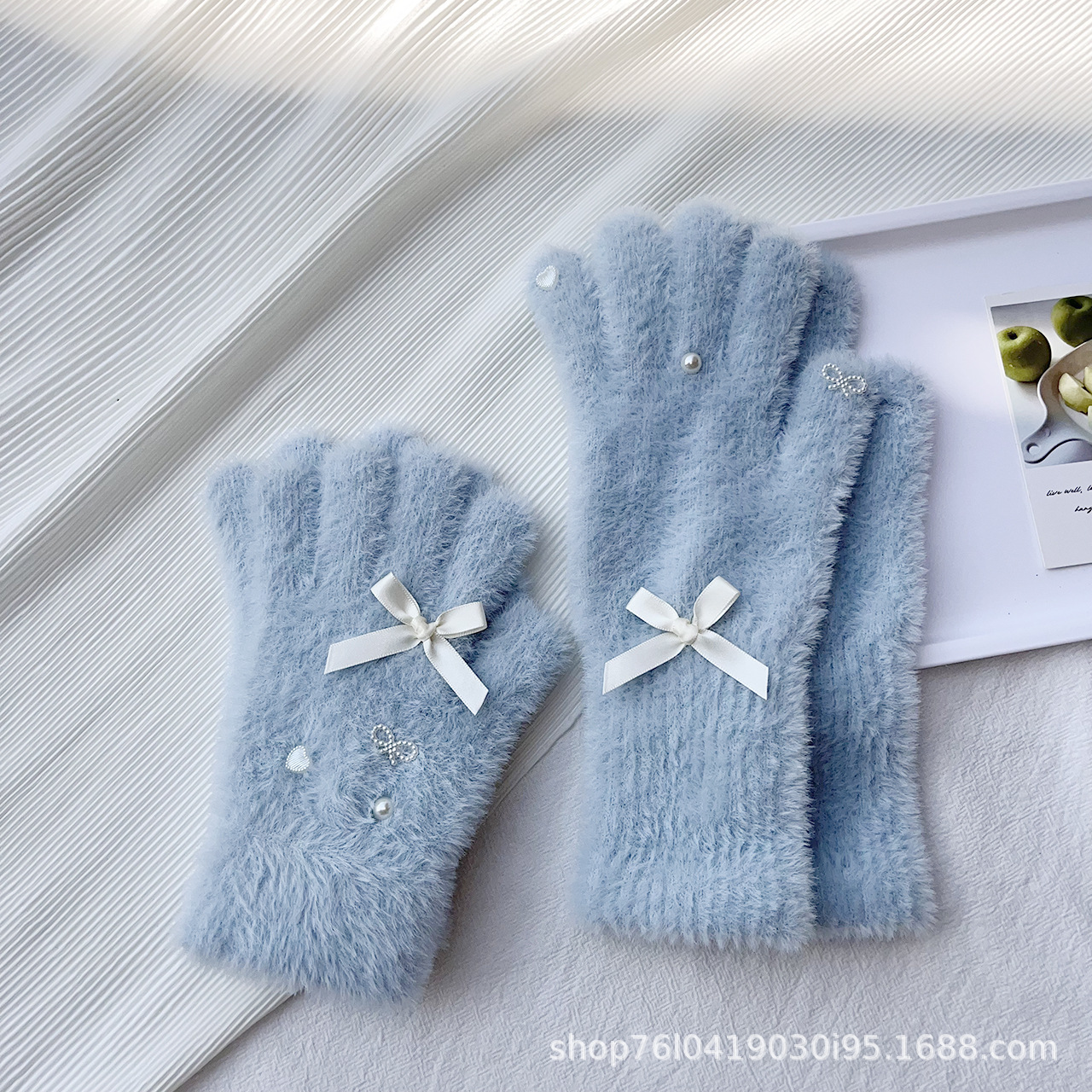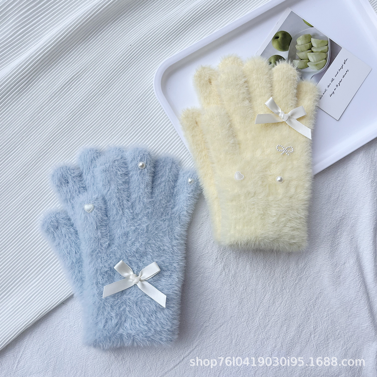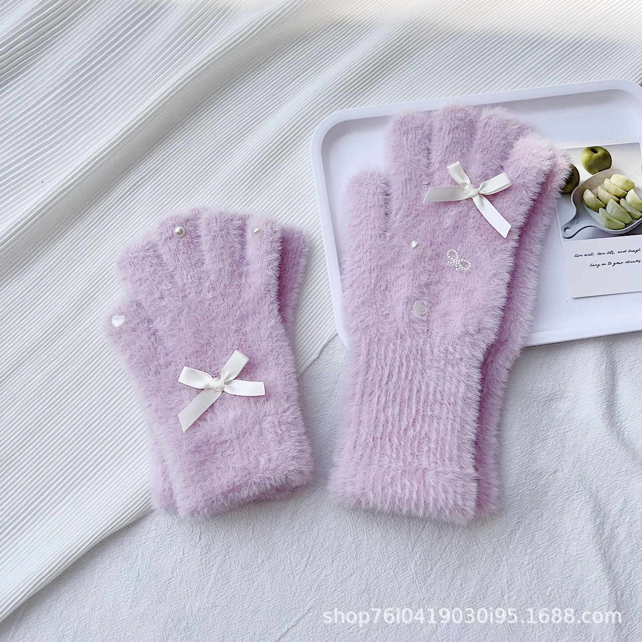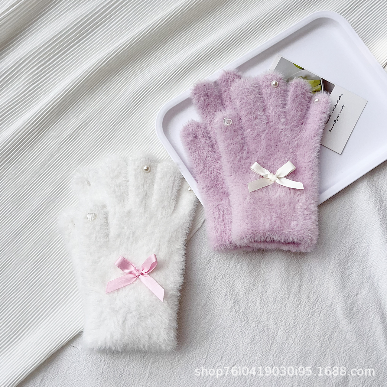 仿貂绒蝴蝶结手套