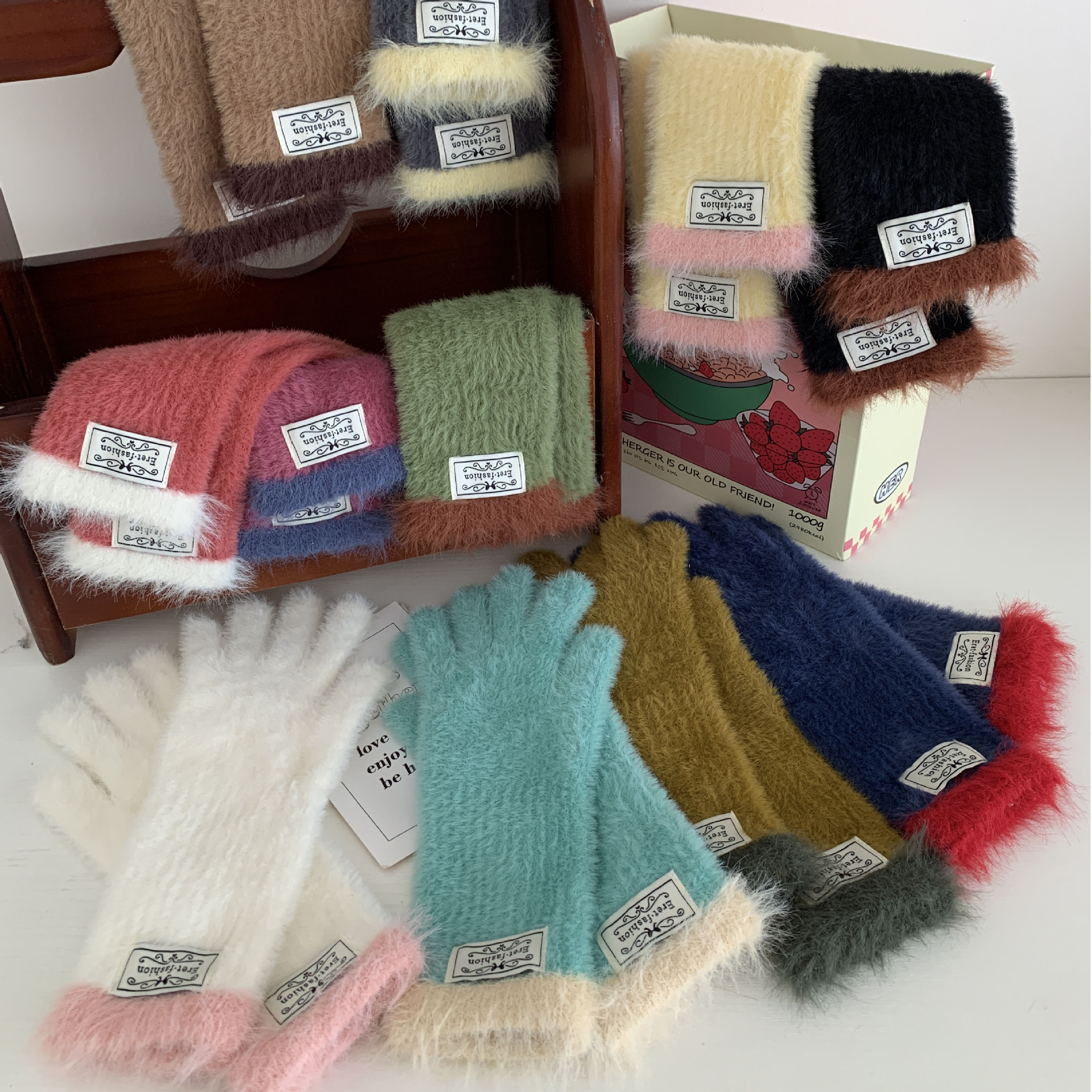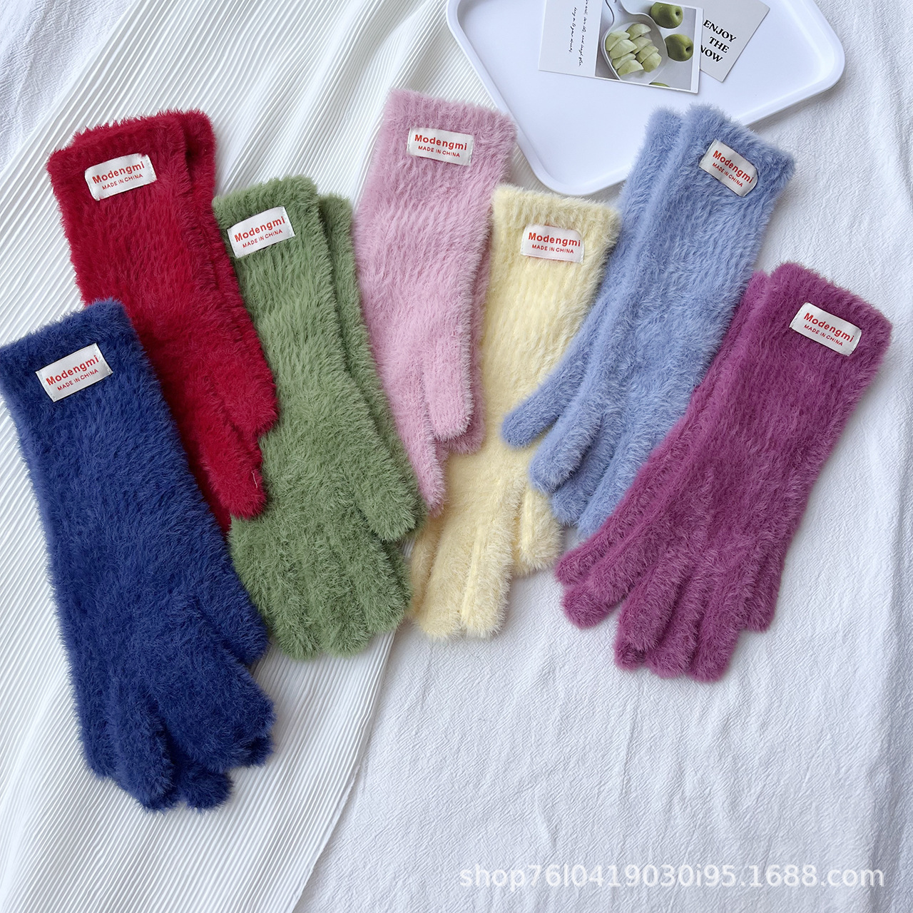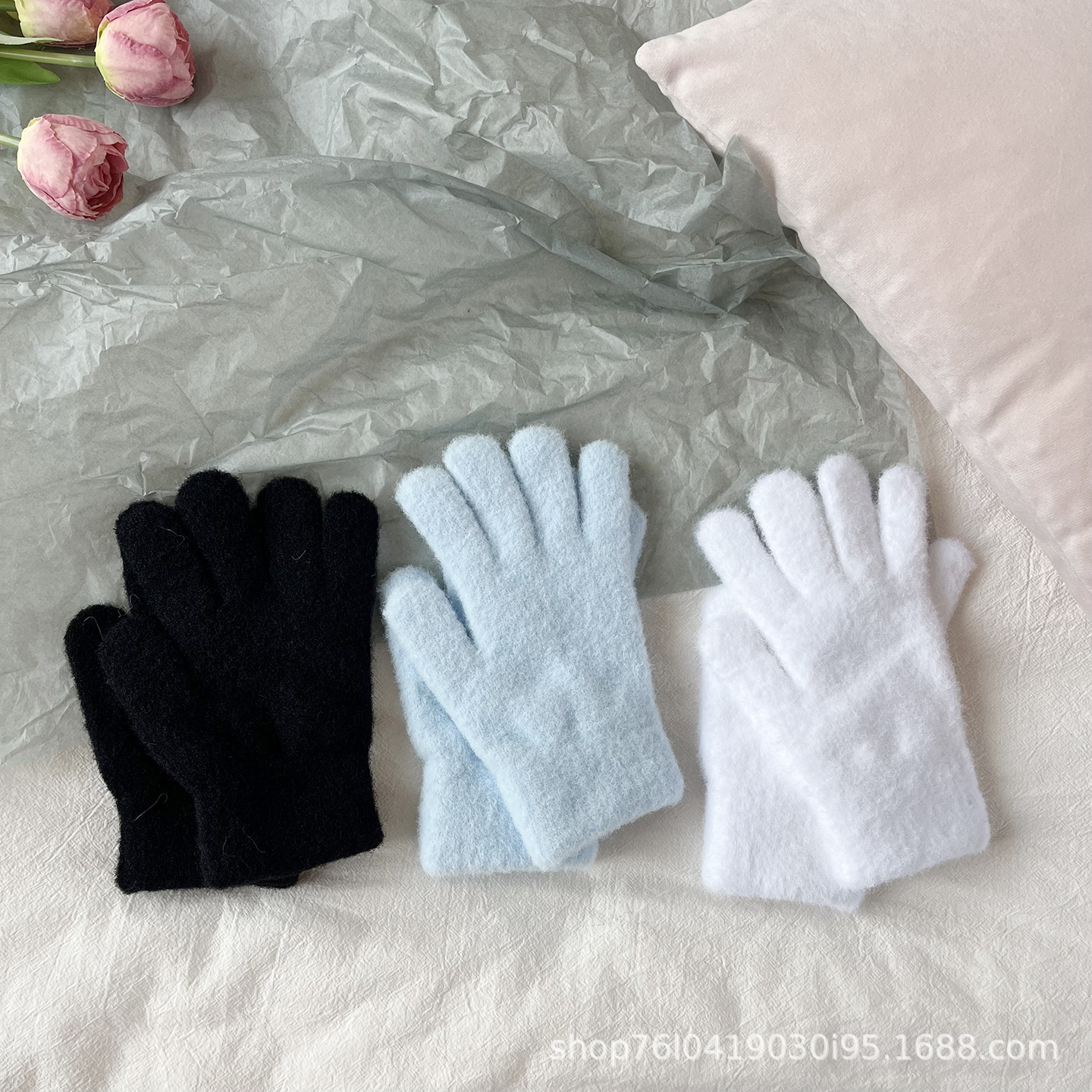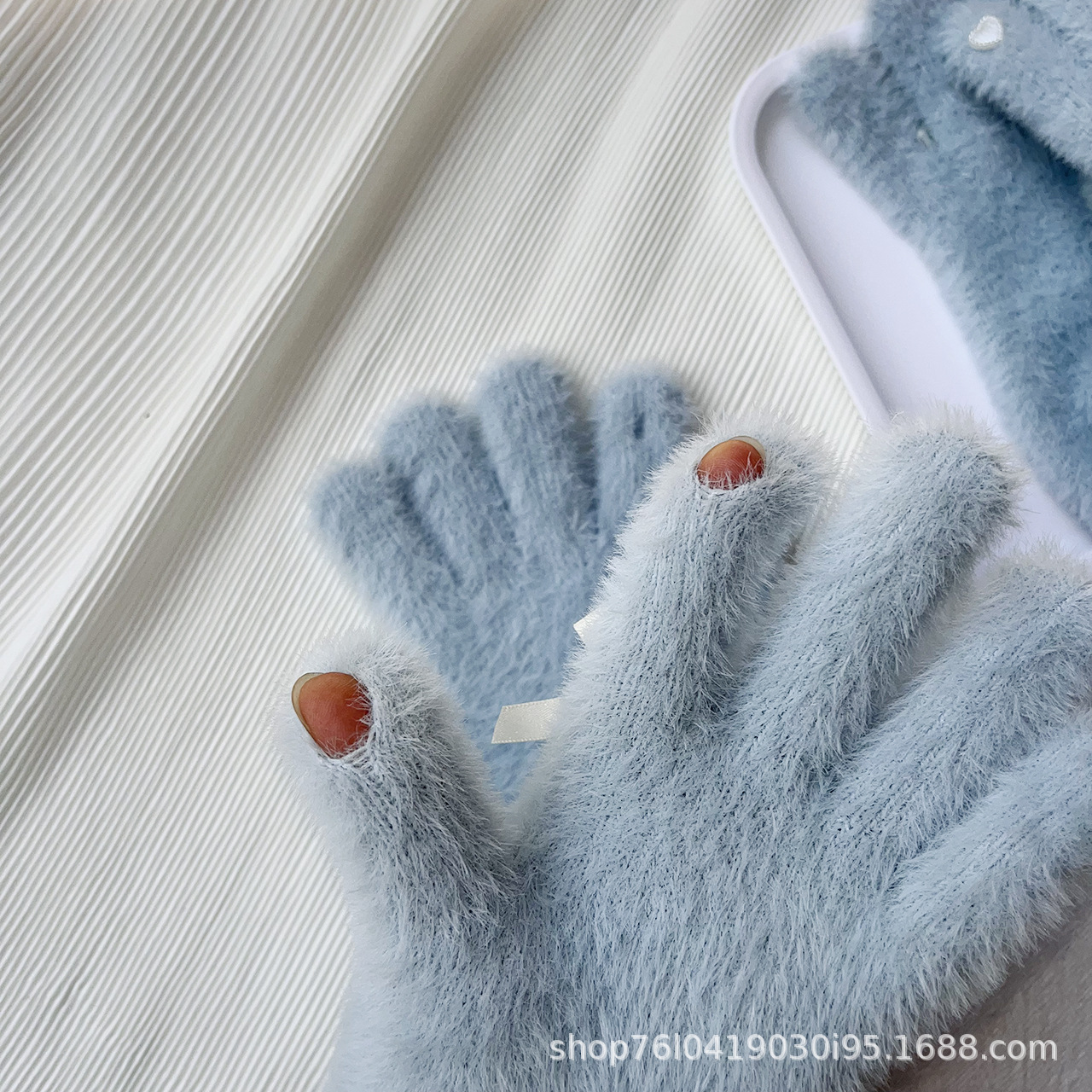 仿貂绒蝴蝶结手套