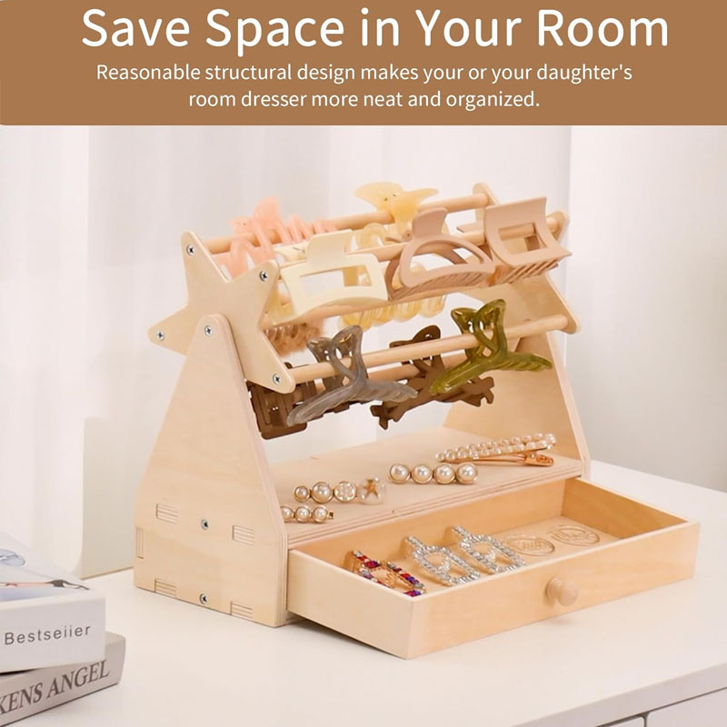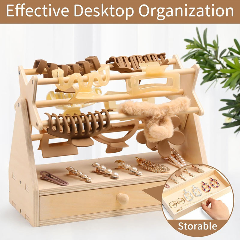木制レディースヘアクリップ収纳ラック回転可能アクセサリー収纳ラック木制ネックレスストレージラックヘアクリップ展示ラック