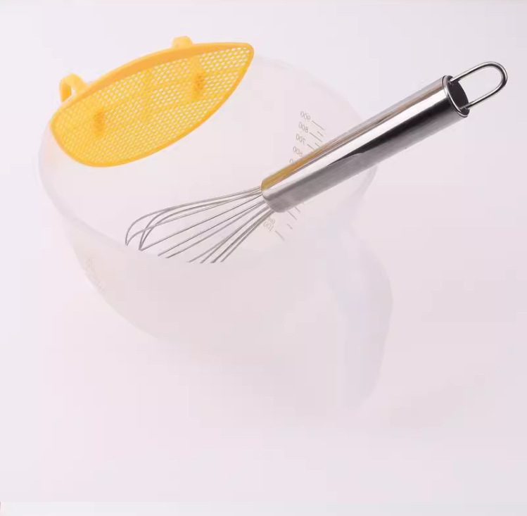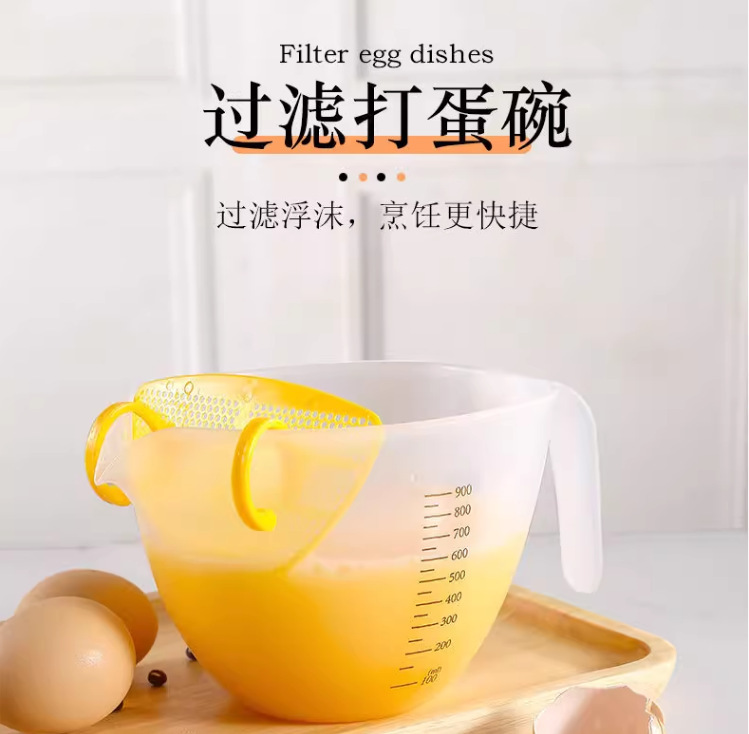 大容量フィルター付き計量カップ、目盛り付き卵液プラスチック製泡立てカップ、卵焼き用フィルター付き、米とぎボウル、卸売