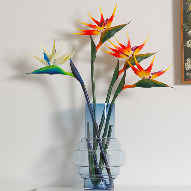 高品質極楽鳥造花装飾品ホームフラワーアレンジメント造花リビングルームの装飾花ソフト接着剤王河蘭卸売