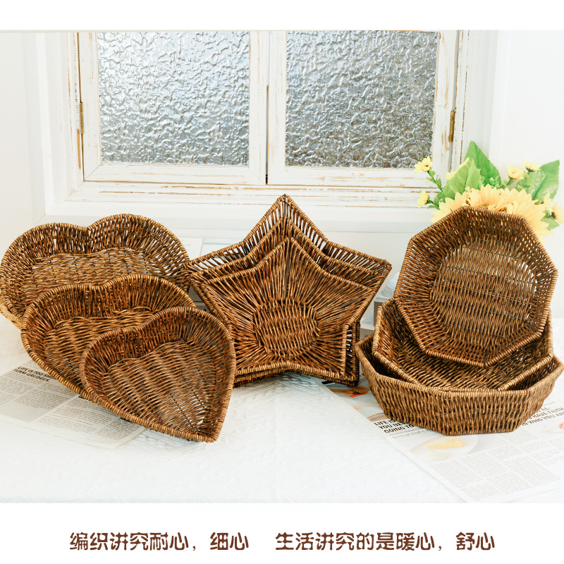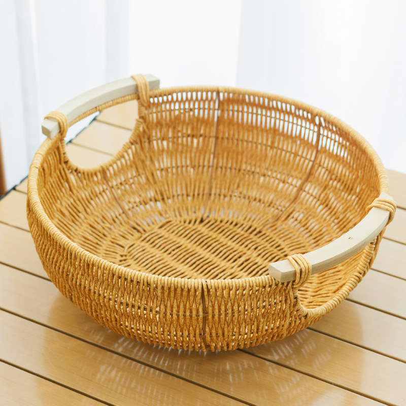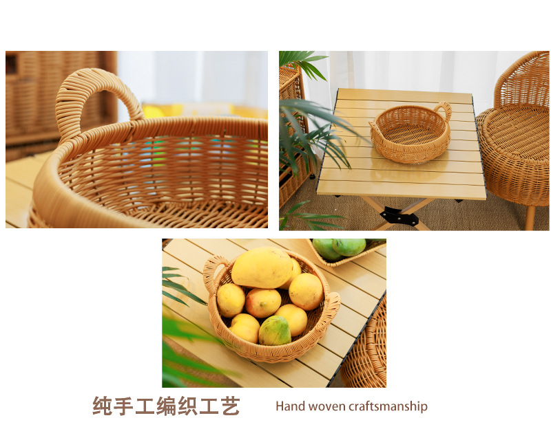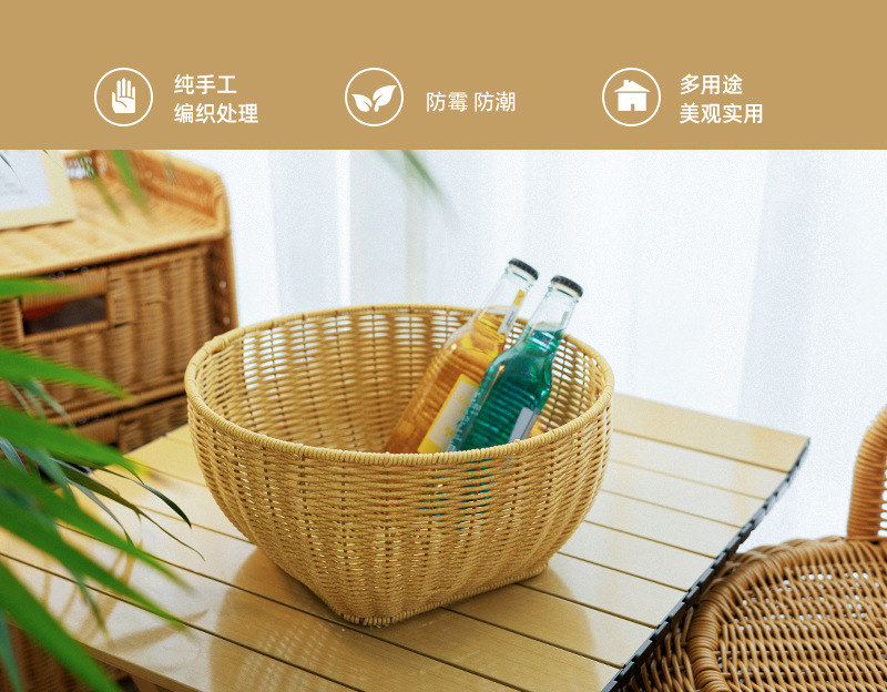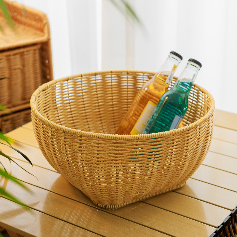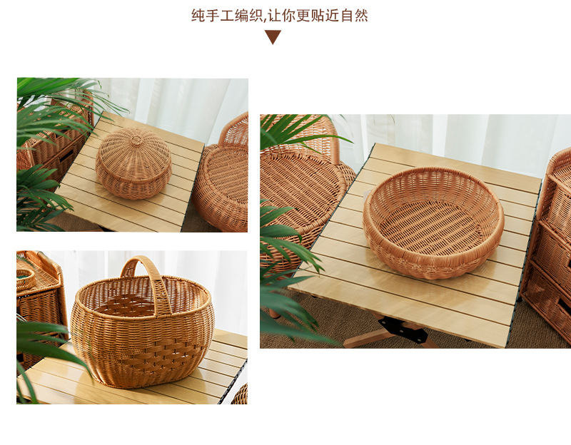 田園風家庭用果物皿模造藤編み収納バスケット台所野菜収納バスケット客間寝室ごみかご