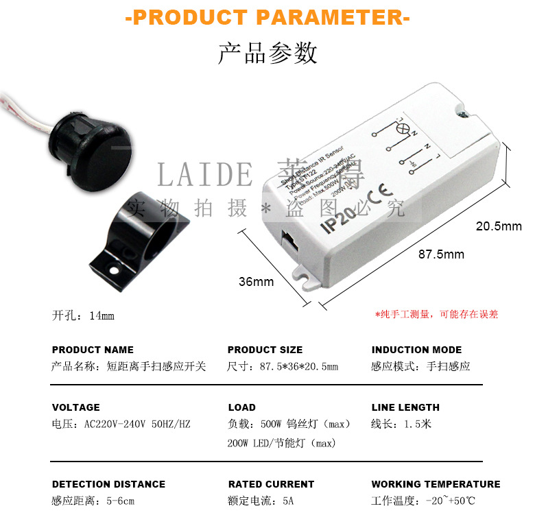 220V手スイープ誘導スイッチ食器棚タンスセンサーダウンライト天井ライトセンサー取り外し可能インテリジェントスイッチ