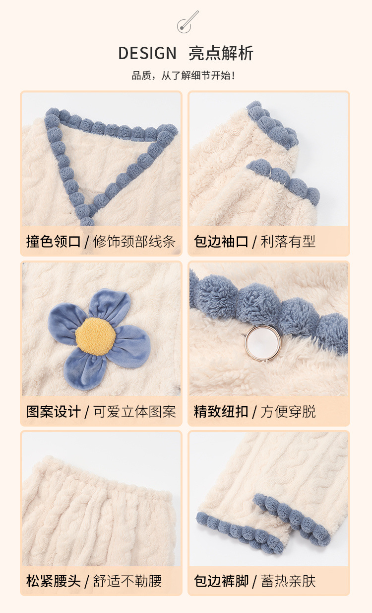 珊瑚绒睡衣女款秋冬季保暖加厚加绒可爱甜美法兰绒公主风宽松套装