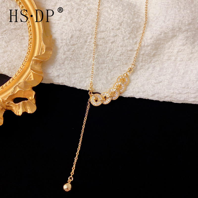 新中式轻奢碎碎冰五帝币流苏项链精致时尚百搭高级感超闪锁骨链女