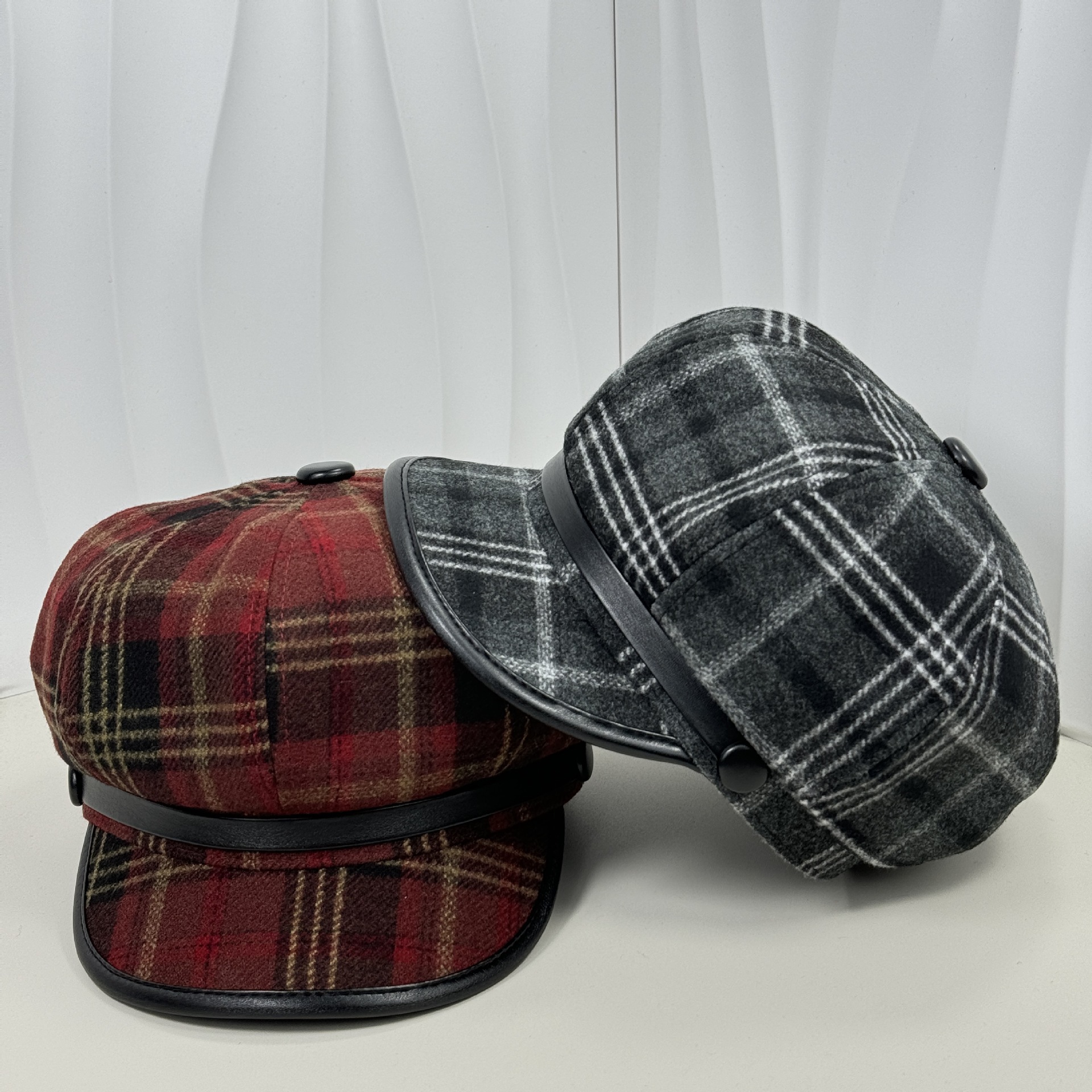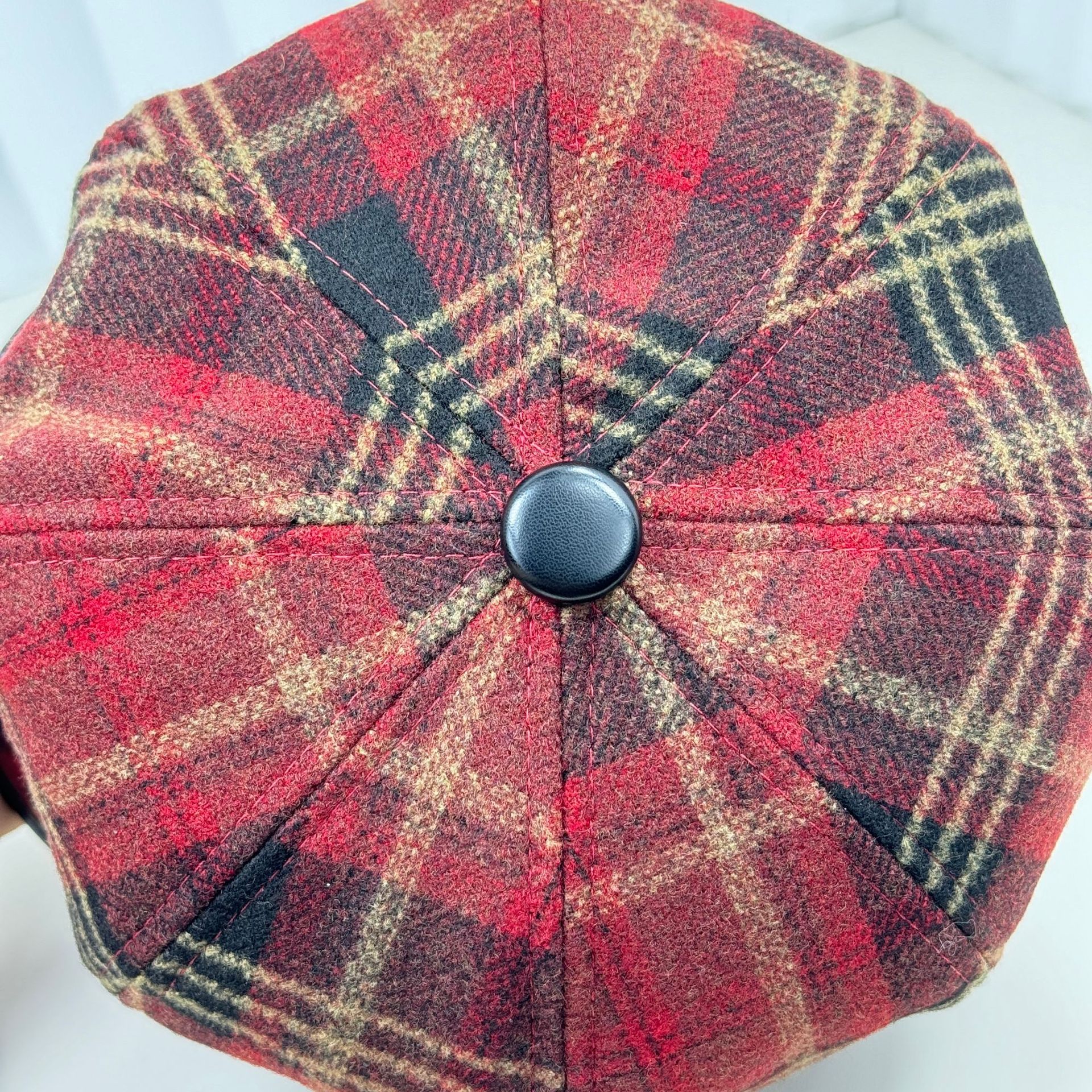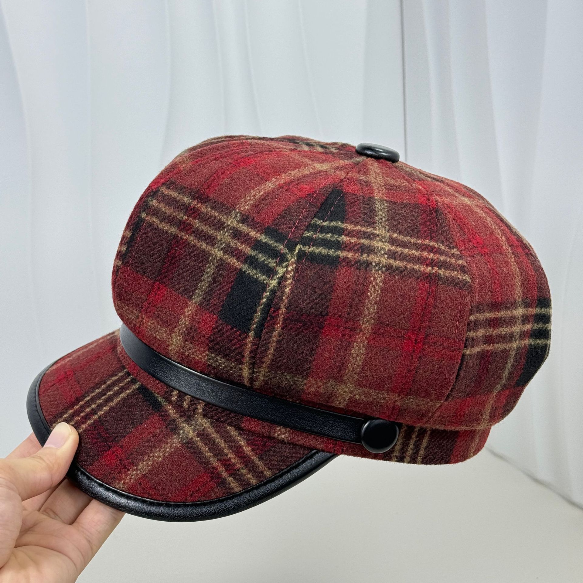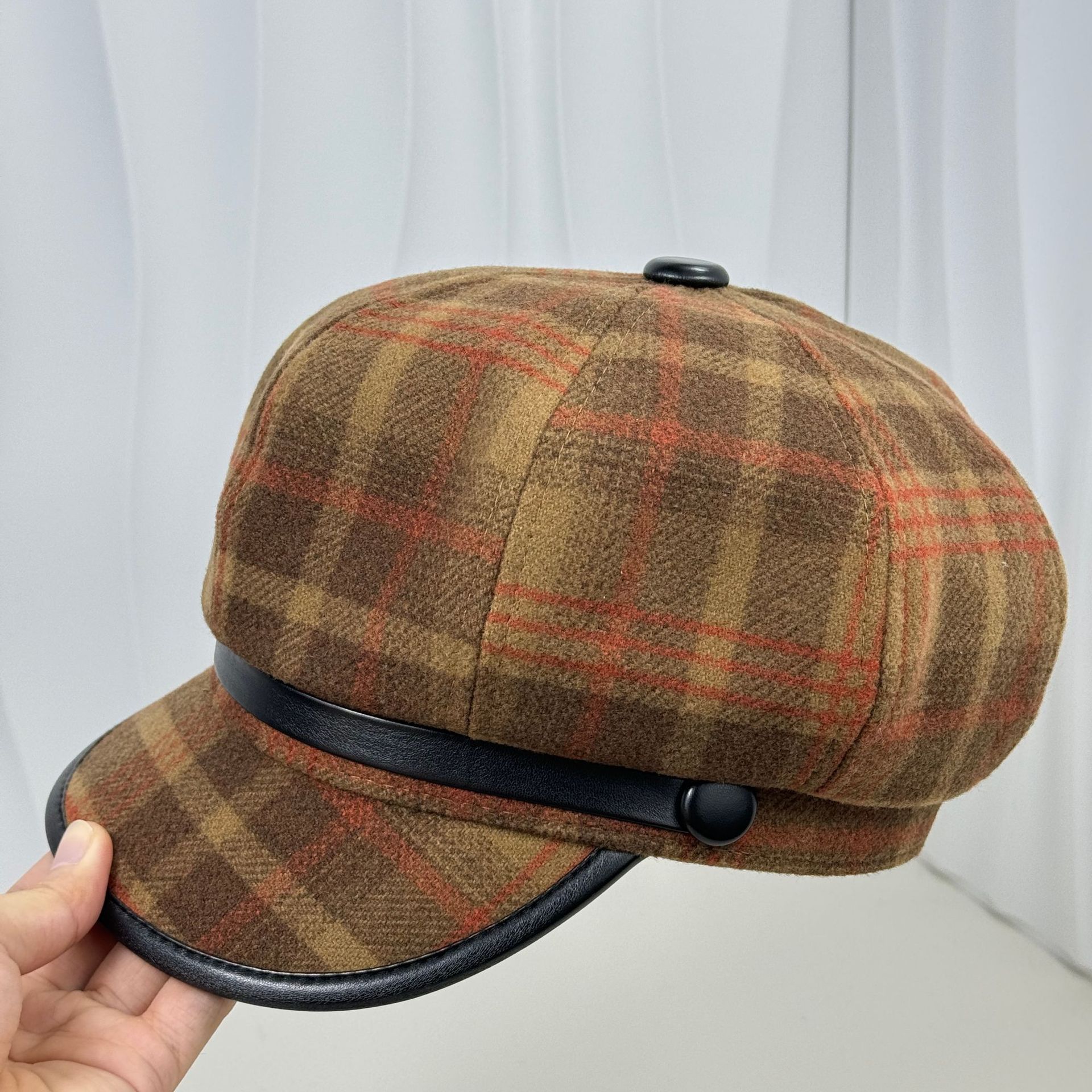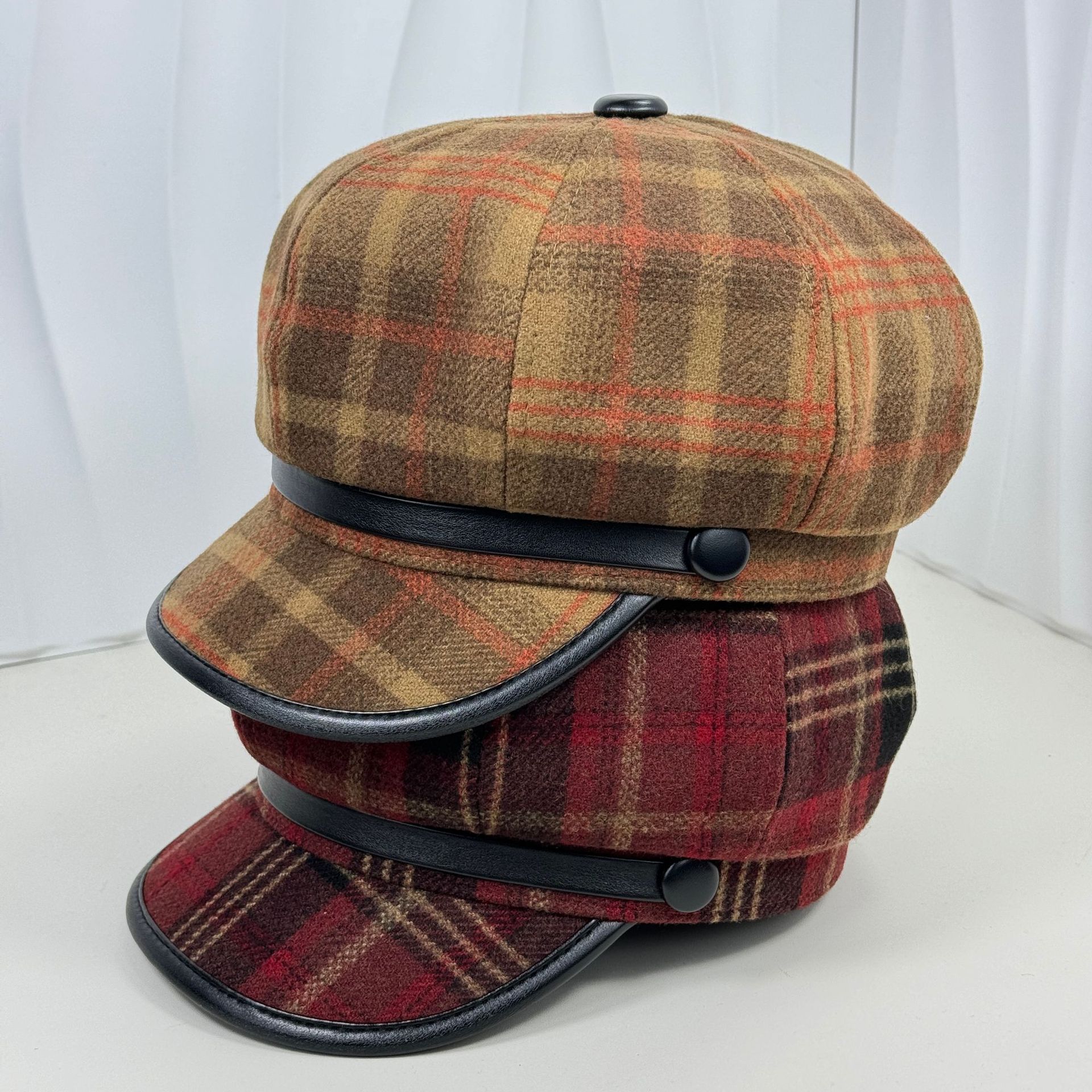 イギリスのレトロな格子縞の八角帽子の女性は秋冬に毛を厚くします。