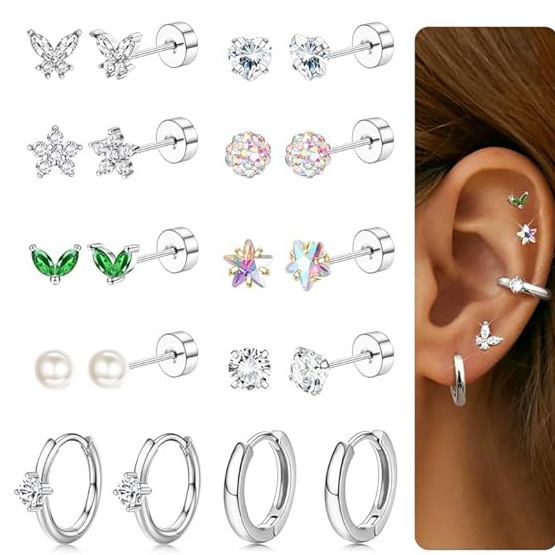 Amazonクロスボーダーベストセラーファッションパーソナライズトレンドステンレススチールスタッドピアスセット工場卸売