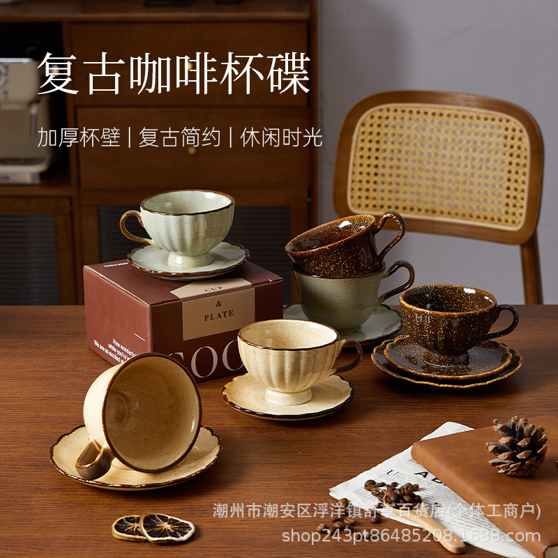 小容量エスプレッソカップ&ソーサーセット、クロスボーダーレトロ風セラミックカップ、レストランアフタヌーンティーカップギフトボックス卸売
