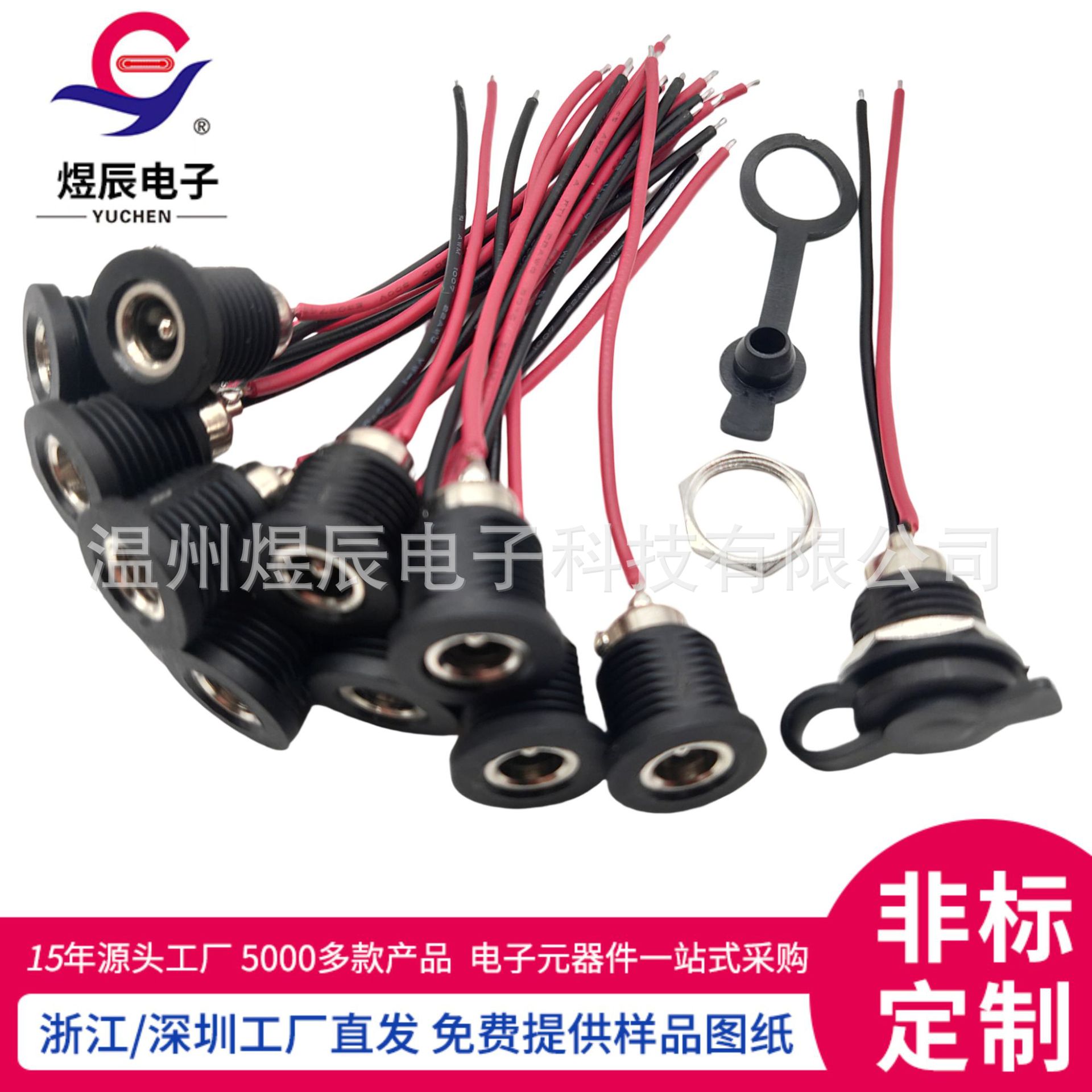直供DC-022カード式ケーブル付き電源コンセントdc 5521射出一体ケーブル付きdcip67防水母座
