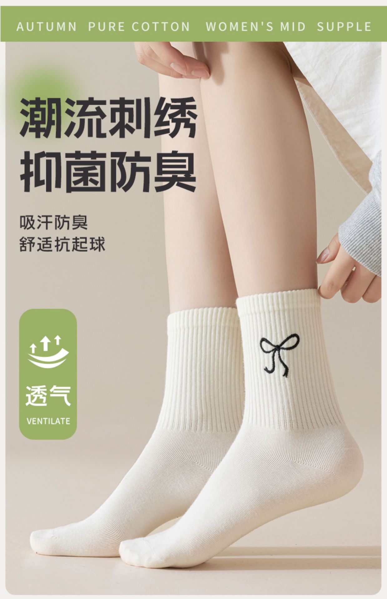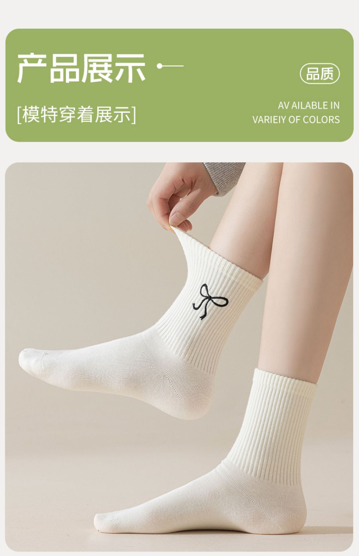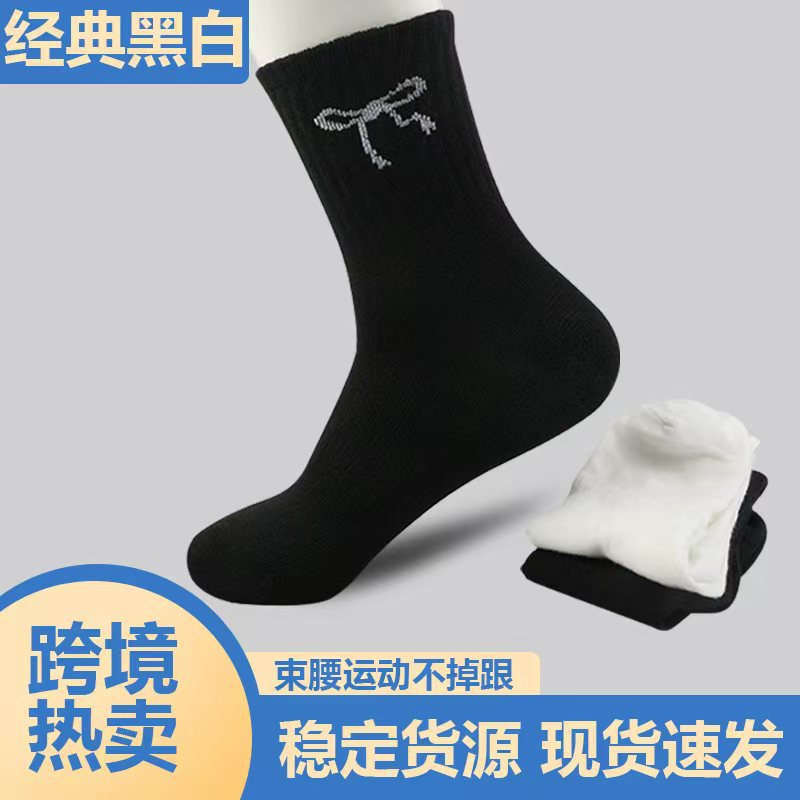 热销跨境亚马逊袜子男女款秋冬中筒袜蝴蝶结袜吸湿排汗运动袜男款