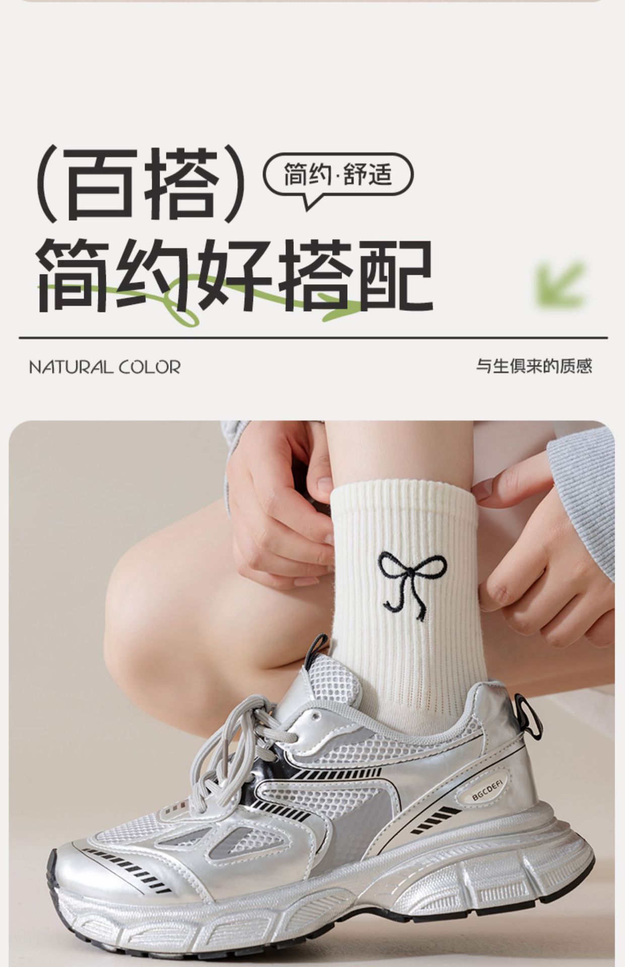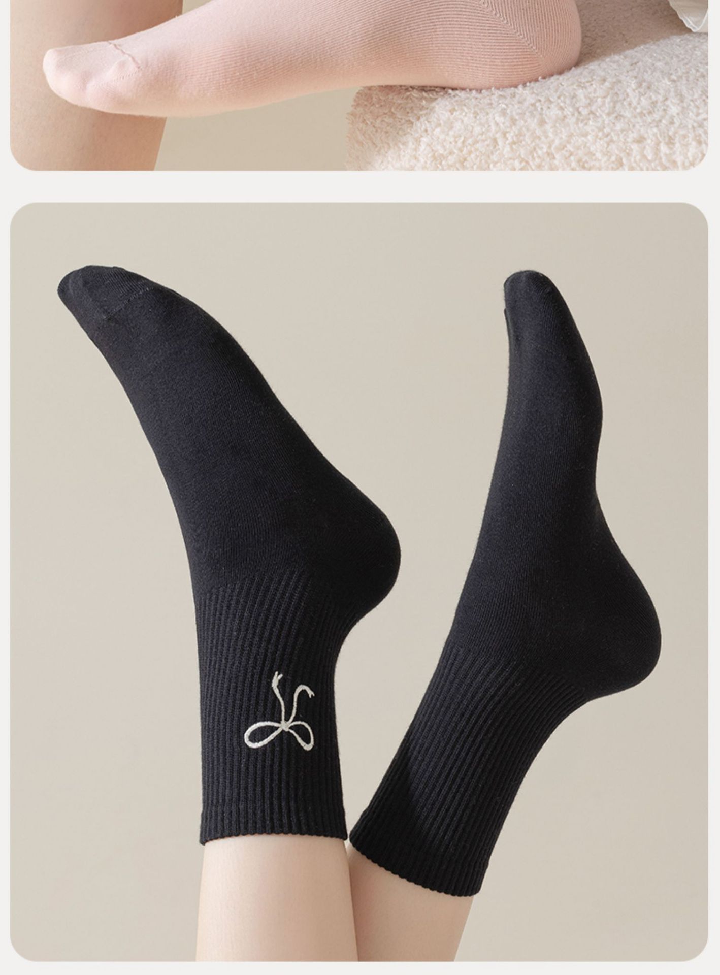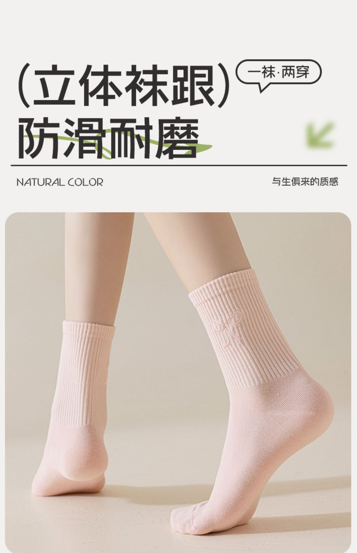 热销跨境亚马逊袜子男女款秋冬中筒袜蝴蝶结袜吸湿排汗运动袜男款
