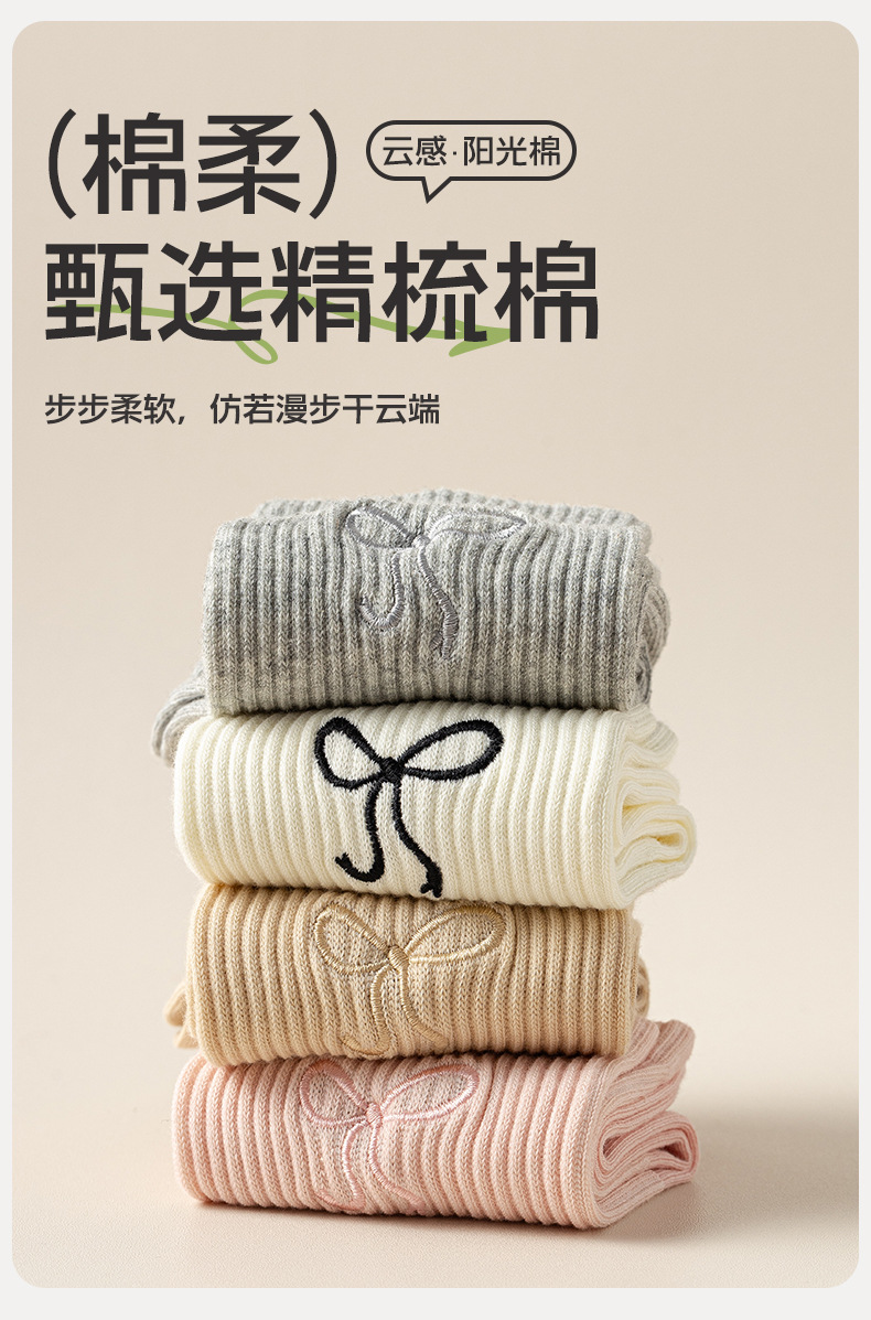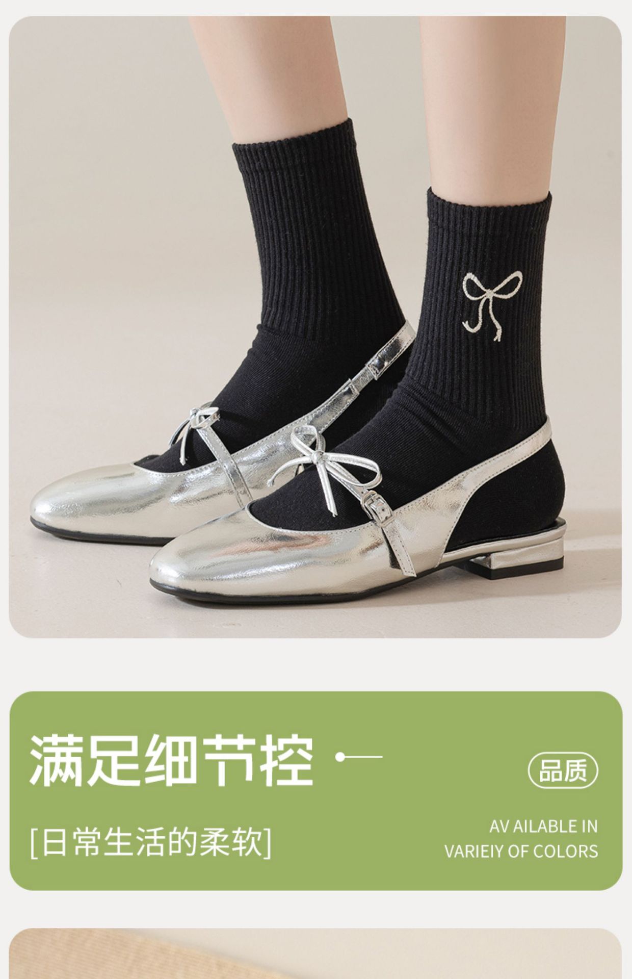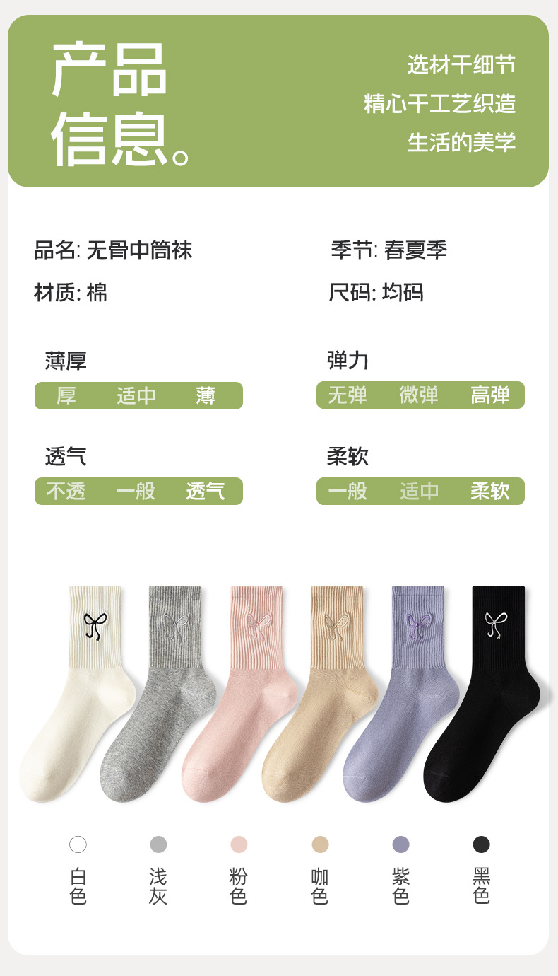 2025新型春夏秋純綿レース蝶結びロリータ中筒靴下純色百合中筒靴下卸売り