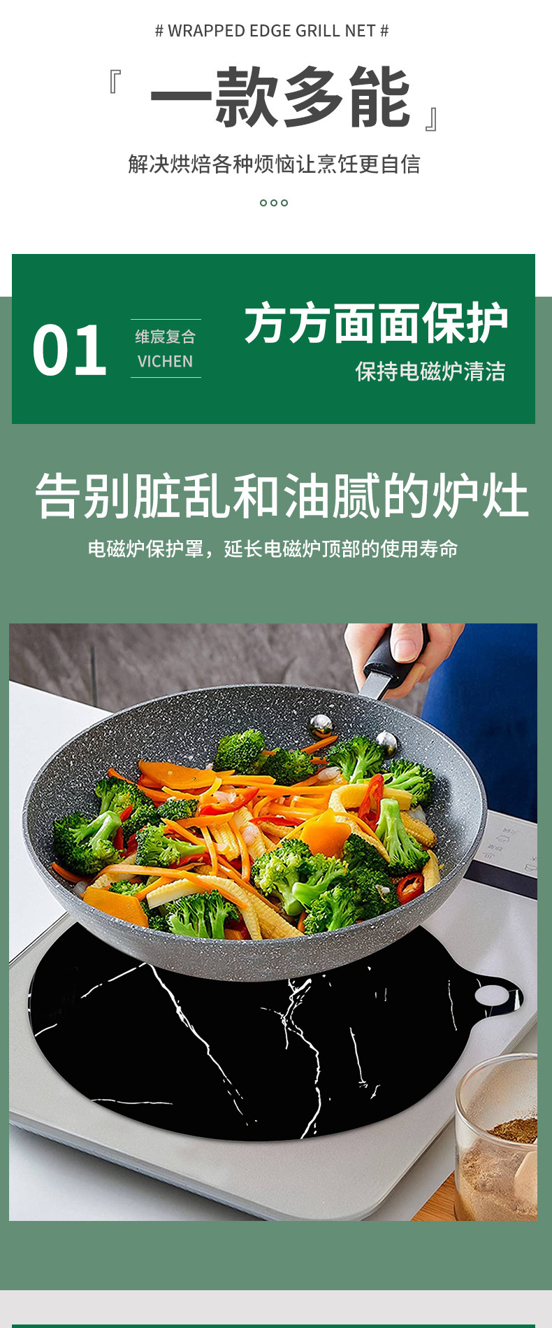 24cm电磁炉垫加热防护防油清洁隔热垫大理石纹款硅胶超薄电磁炉垫