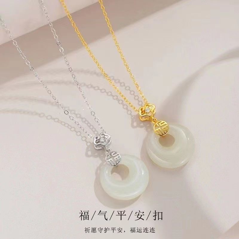 新型国風如意祥雲ネックレス平安吉祥高級軽豪華小衆中国式デザイン白玉髄鎖
