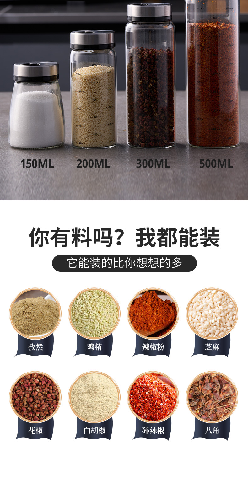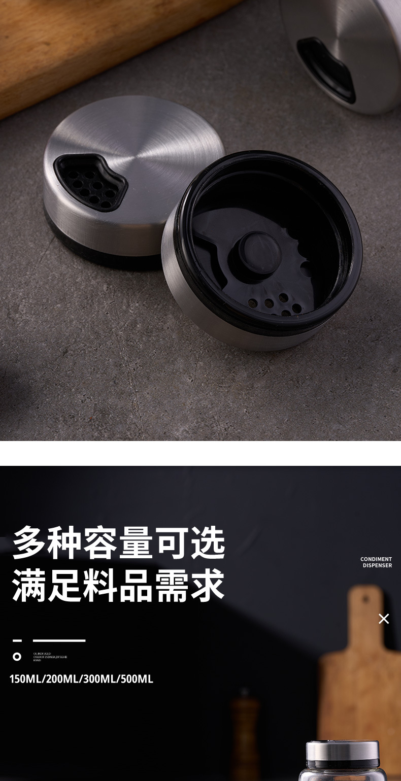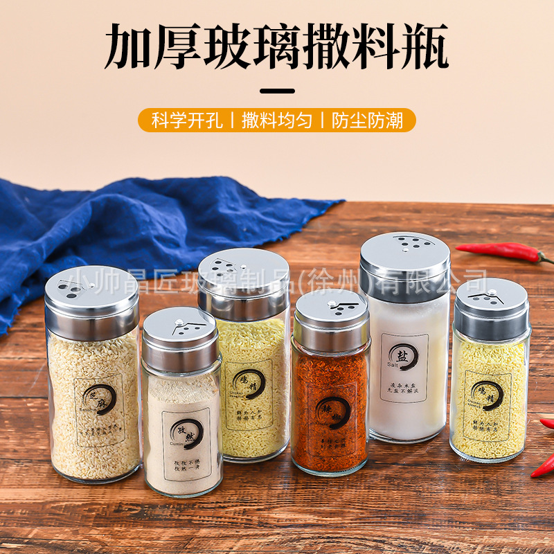 批发玻璃撒料瓶家用胡椒粉烧烤味精盐罐厨房佐料瓶不锈钢盖调料罐