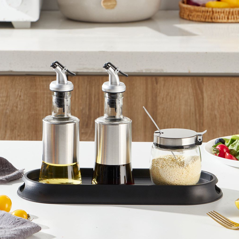 現物ガラス油壺セットステンレス調味缶醤油酢調味料瓶香油台所用品卸売り