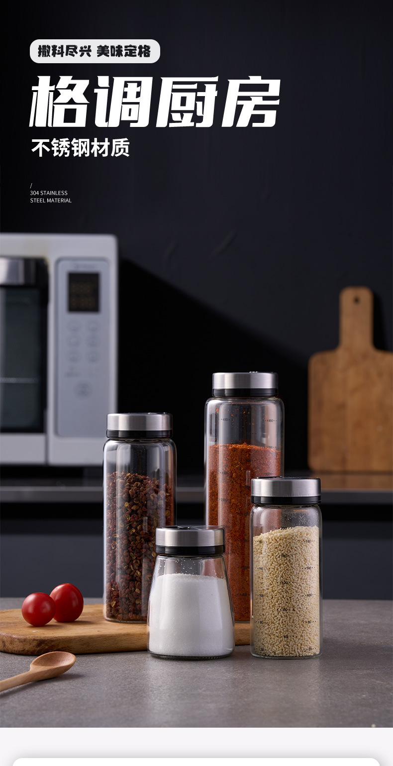 304ステンレス蓋ガラス散布瓶胡椒粉焼き味の素塩缶キッチン調味料箱調味料瓶