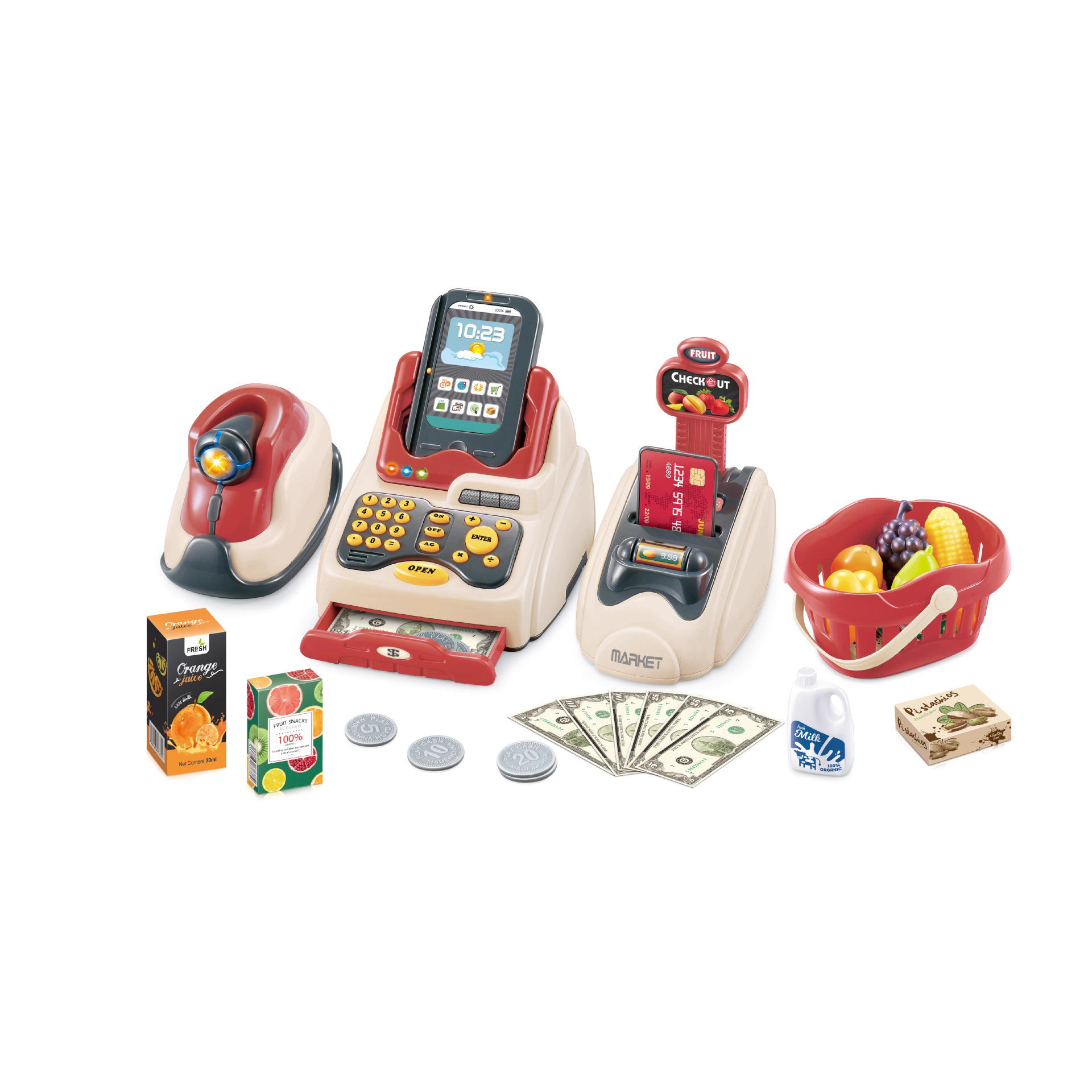国境を越えたおもちゃのままごと、模擬レジ、スーパーマーケットの買い物、カード決済機、QRコードスキャナー、子供向け
