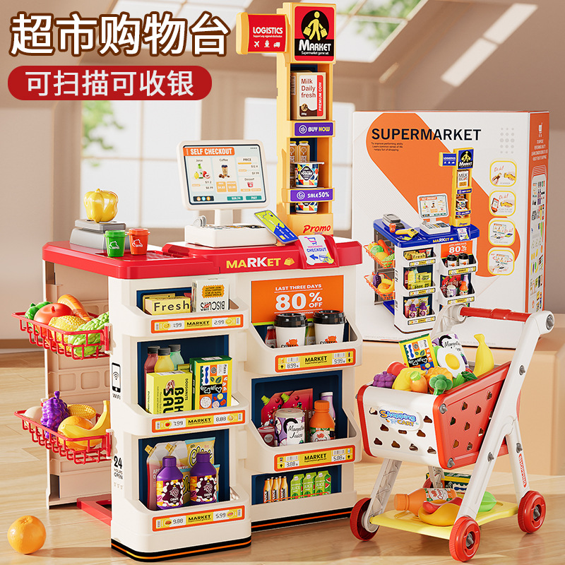 外国貿易の子供のシミュレーションのスーパーマーケットのショッピングカートの販売台の組み合わせのままごとのおもちゃのスーツのスーパーマーケットのスキャンのスーツ