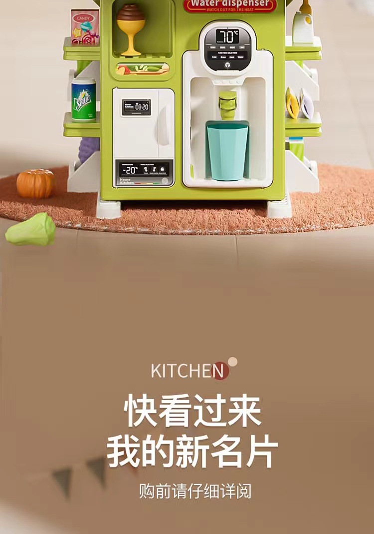 特長機能 、製氷機、カラー粘土機、ウォーターディスペンサー、スプレー水、光と音楽付き