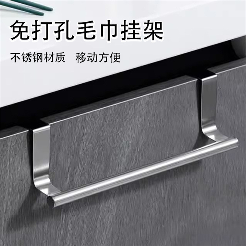 クロスボーダー吊り下げステンレス鋼シングルポールタオルラック吊り下げロッドキャビネットドアバックタイプハンギングラックパンチングなし雑巾ラックドア吊り下げ