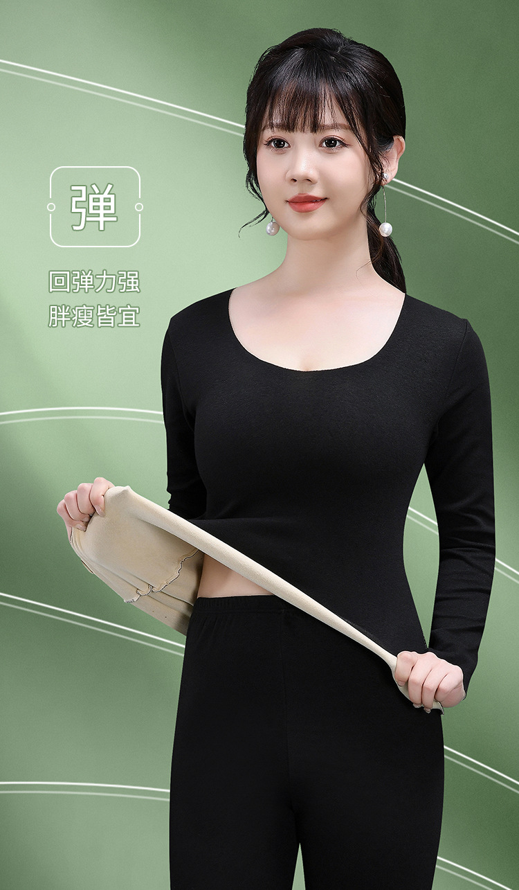 秋冬超薄ヒアルロン酸美肌服高弾ステルス無痕発熱保温底秋衣ズボン潤肌服腹