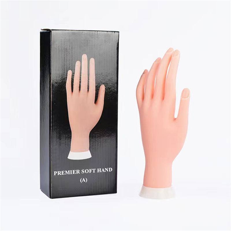 ネイルシリコンの手のモデルの偽の爪の練習の手の金型の初心者は右手を練習して小さい手を曲げることができます。