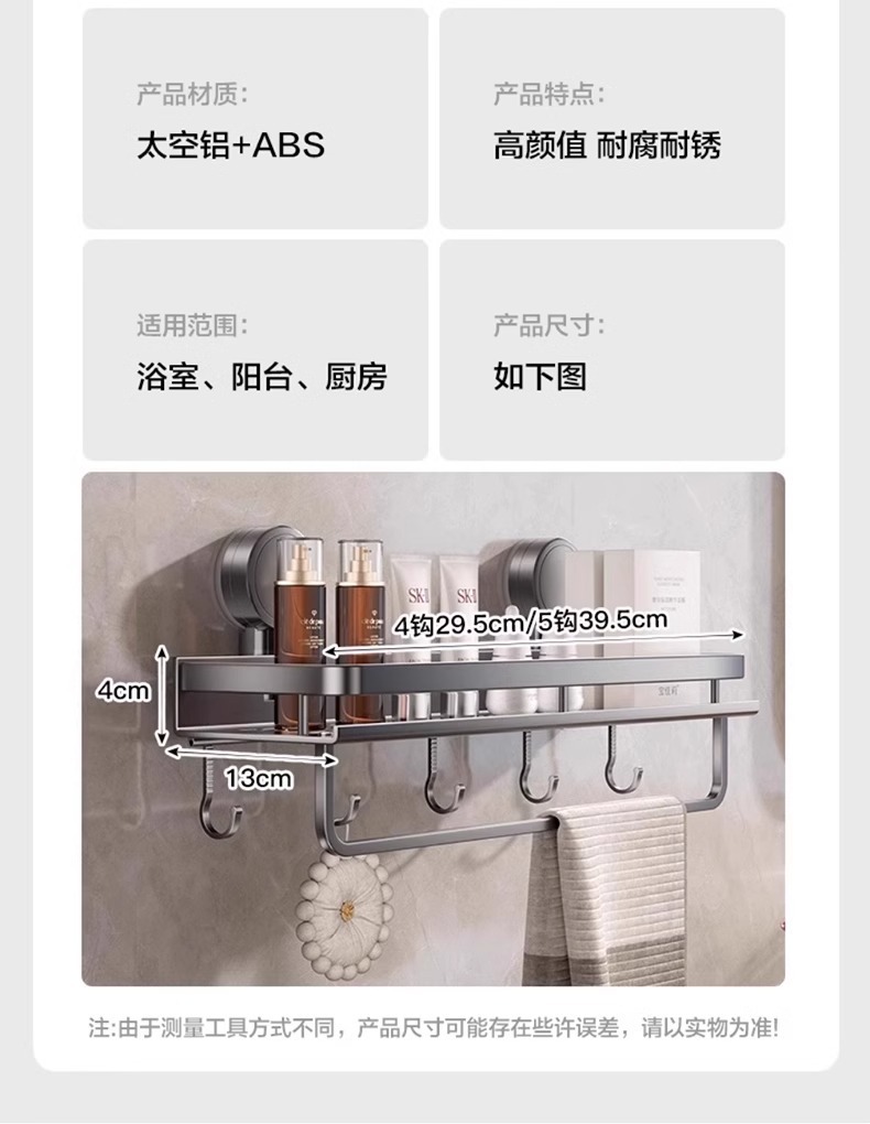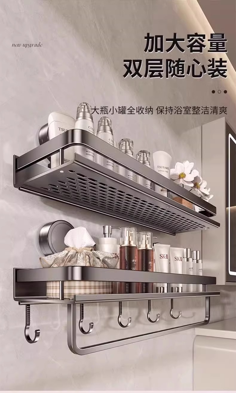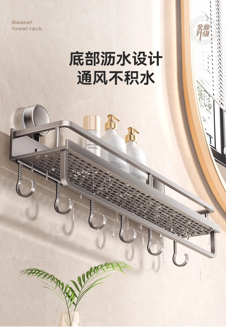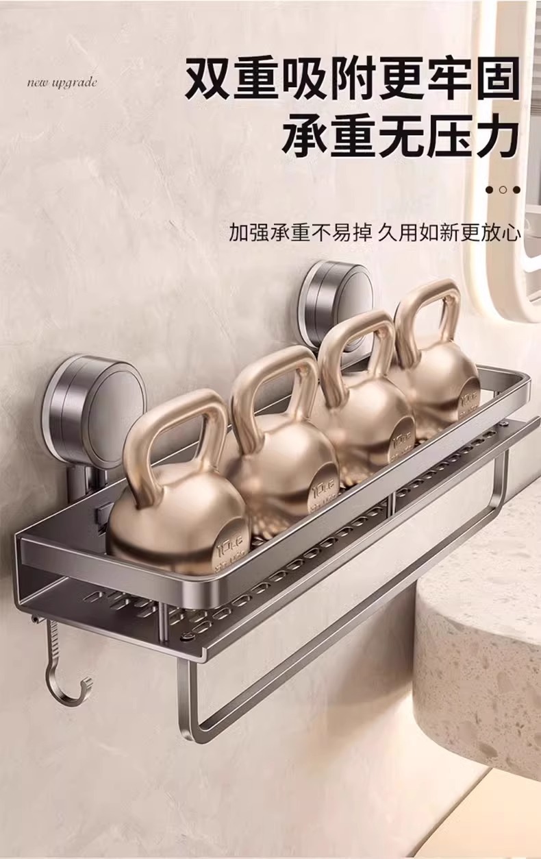 宇宙アルミトイレ吸盤ラック壁掛け式穴なし浴室タオルラック洗面台多機能収納