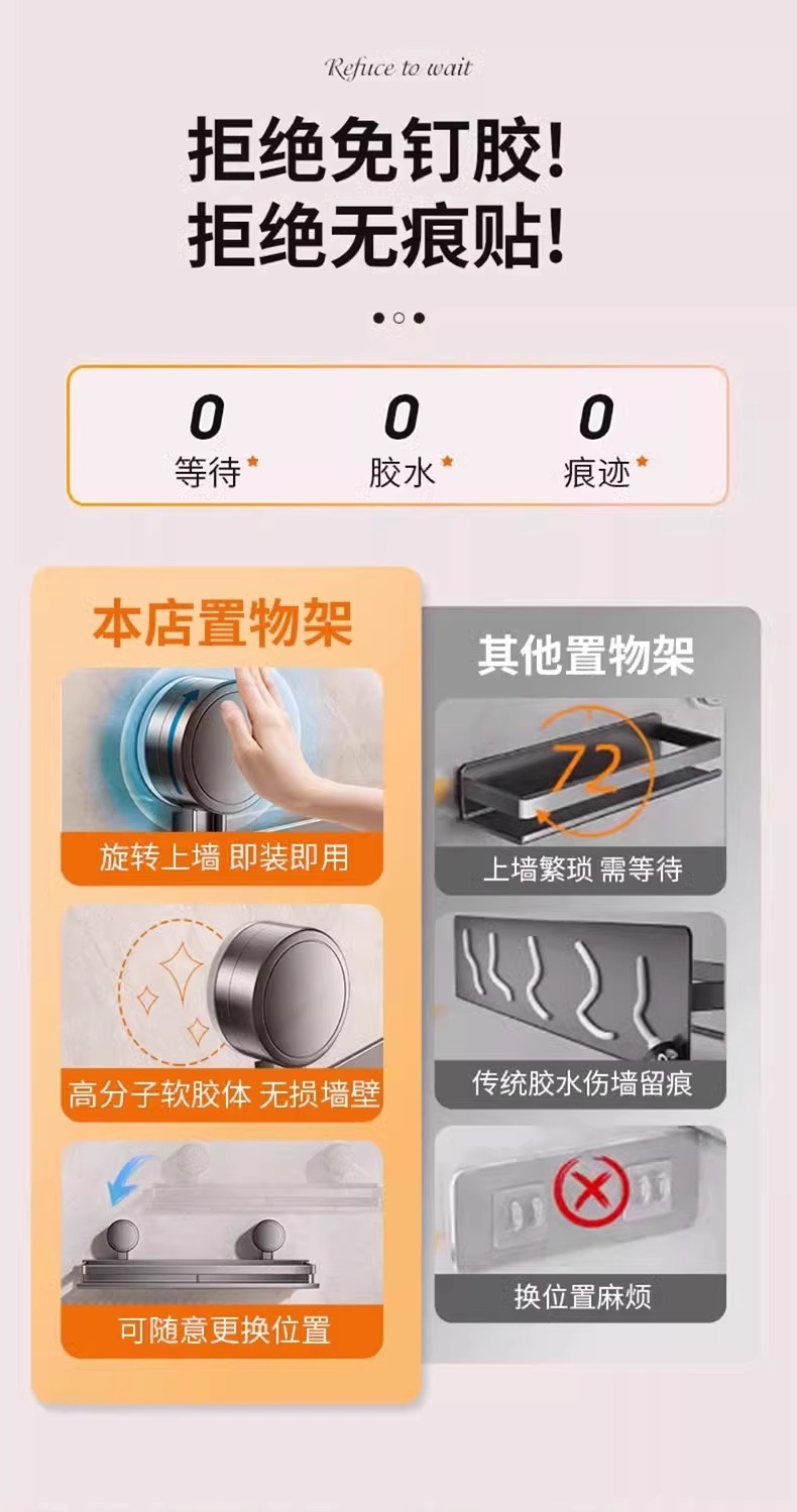 吸盤物置棚トイレ浴室洗面台トイレ穴なし壁掛け壁に高収納棚を上げて棚をかける