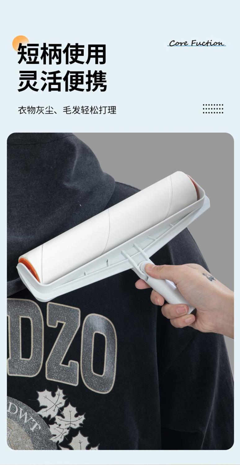 粘毛器滚毛筒滚刷地板床铺除毛发宠物毛清理可撕替换纸短柄黏毛器