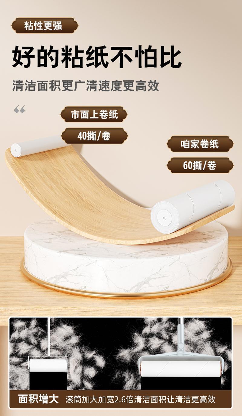 长柄粘毛器家用衣物地板宠物毛发黏毛滚可撕式卷纸替换芯滚筒除毛