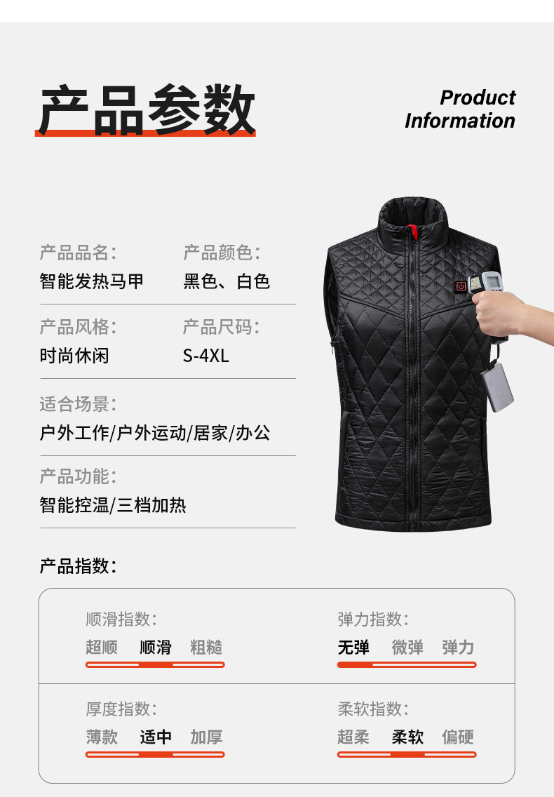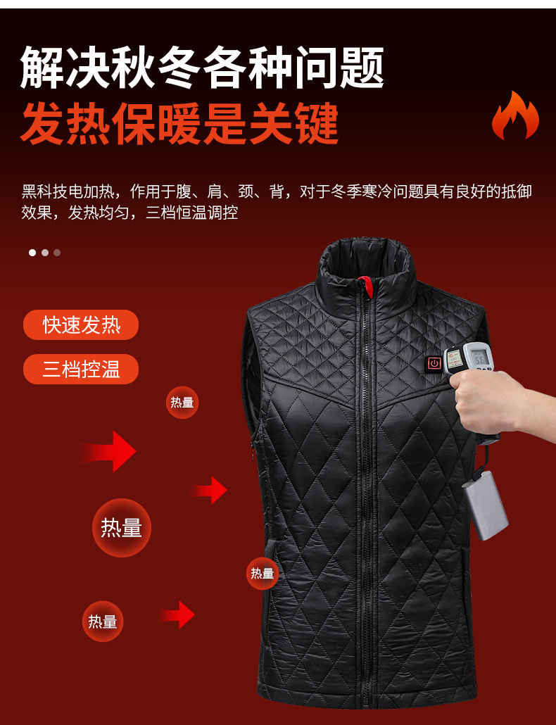 現物冬知能加熱保温馬甲新型発熱保温恒温白黒馬甲クロスボーダー工場卸売り