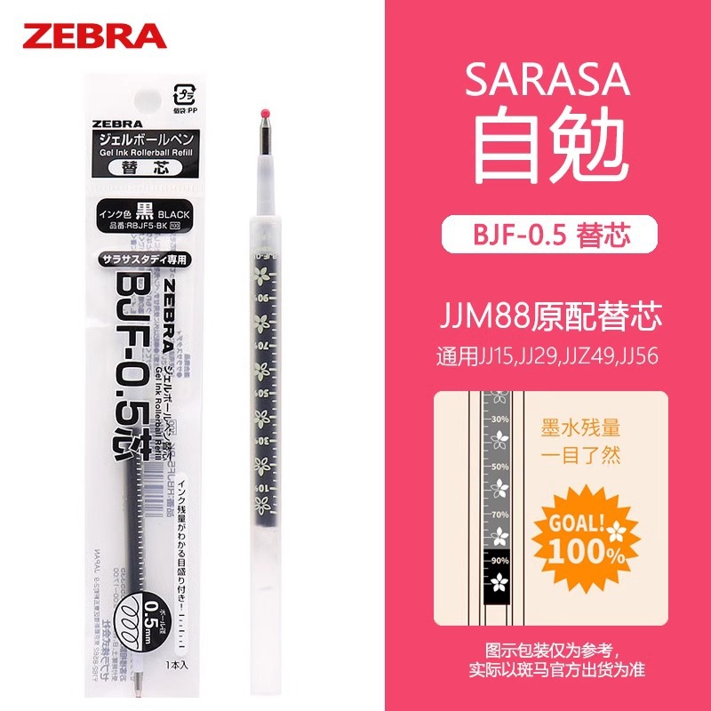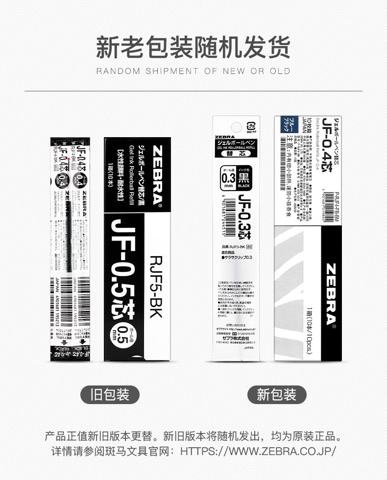 日本ZEBAR斑马笔芯JF-0.5中性笔替芯/适用JJ15限定款按动黑色水笔