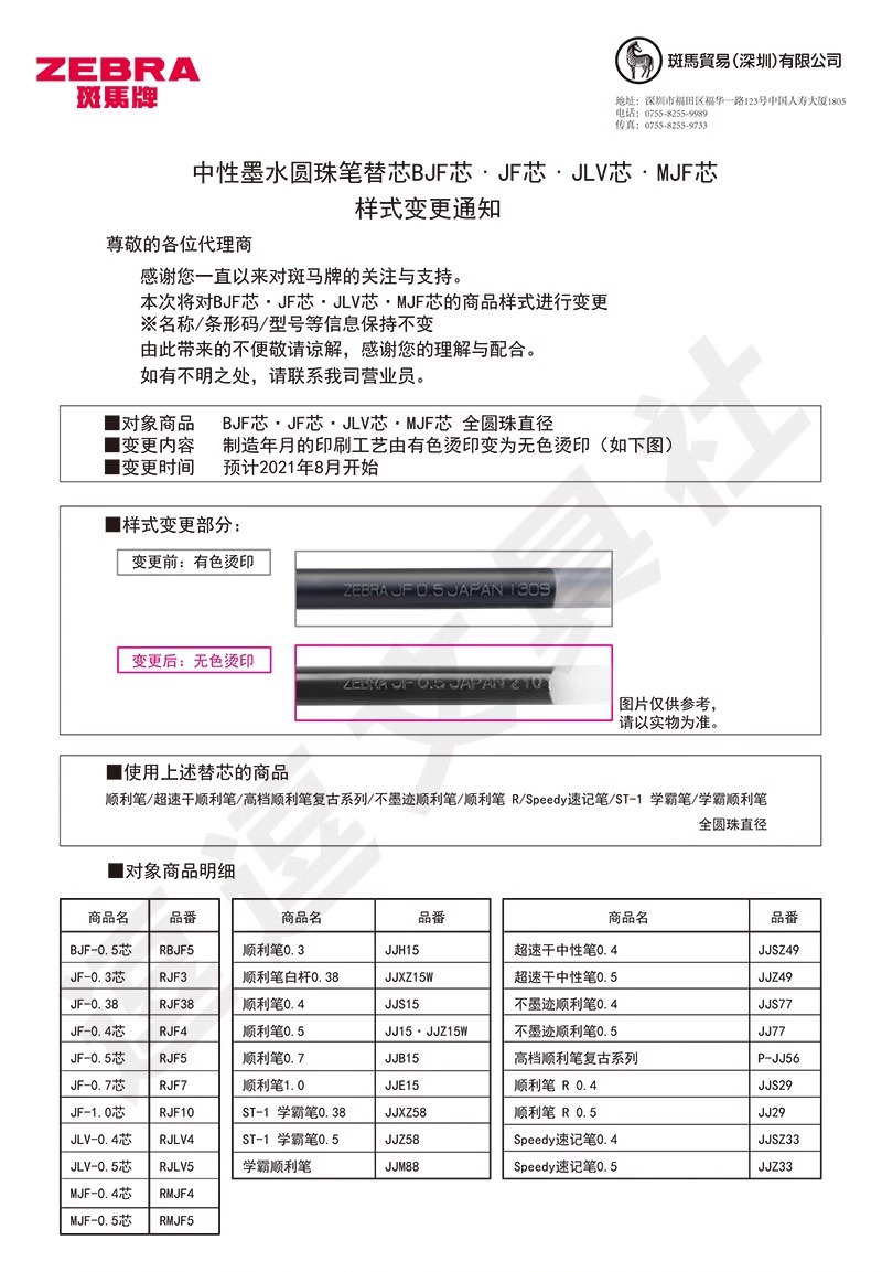 ZEBRA日本斑马JF-0.5-0.4-0.3-0.7笔芯/0.5/0.4/0.3/0.7/0.38/1.0